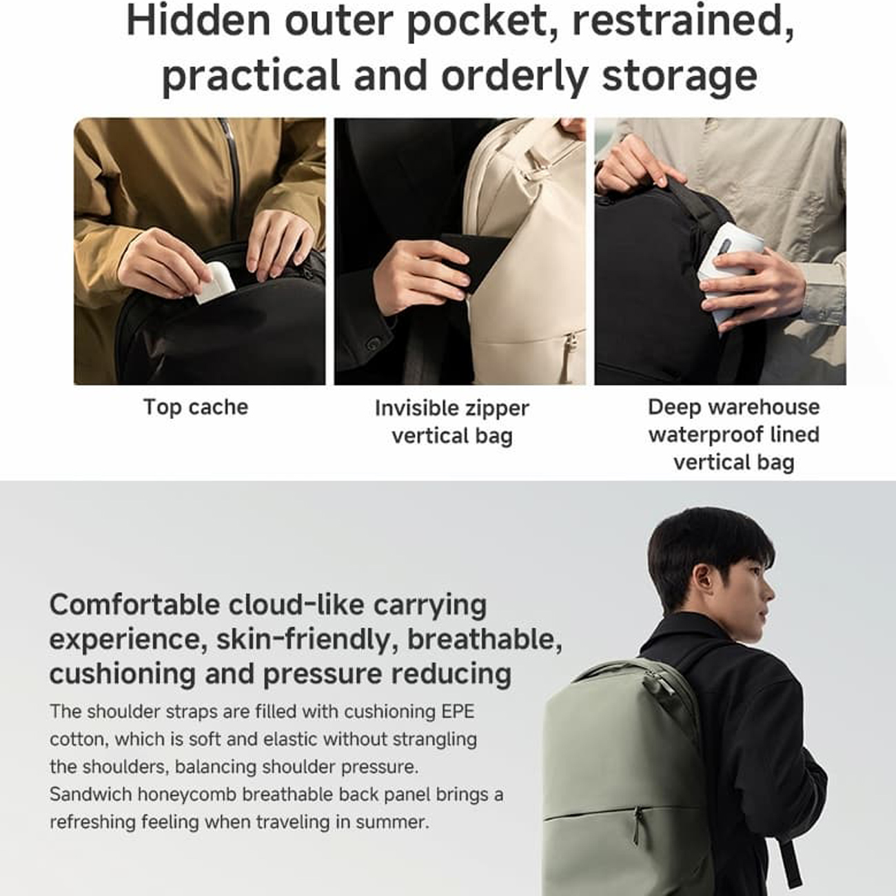 | نوع بند | دو بند روی دوشی، ارگونومیک و نرم |