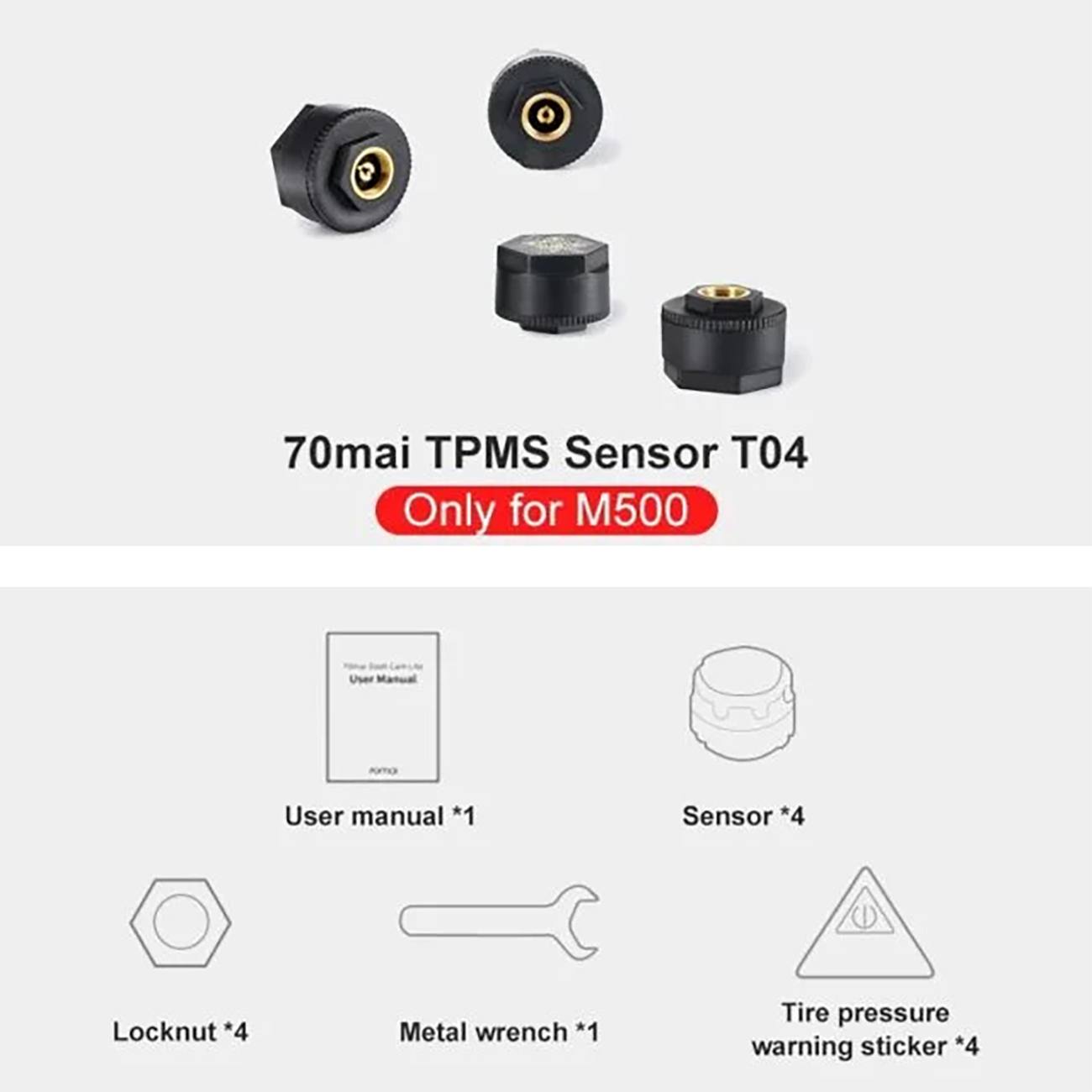 توجه داشته باشید که سنسور T04 تنها با دوربین داشبورد 70mai M500 سازگار است و بهصورت مستقل کار نمیکند. این دوربین سیگنالهای بلوتوث را مستقیماً از سنسورها دریافت میکند و اطلاعات فشار و دمای لاستیکها را از طریق اپلیکیشن 70mai نمایش میدهد. این ترکیب، یک سیستم نظارتی یکپارچه و هوشمند برای ایمنی خودرو ارائه میدهد.