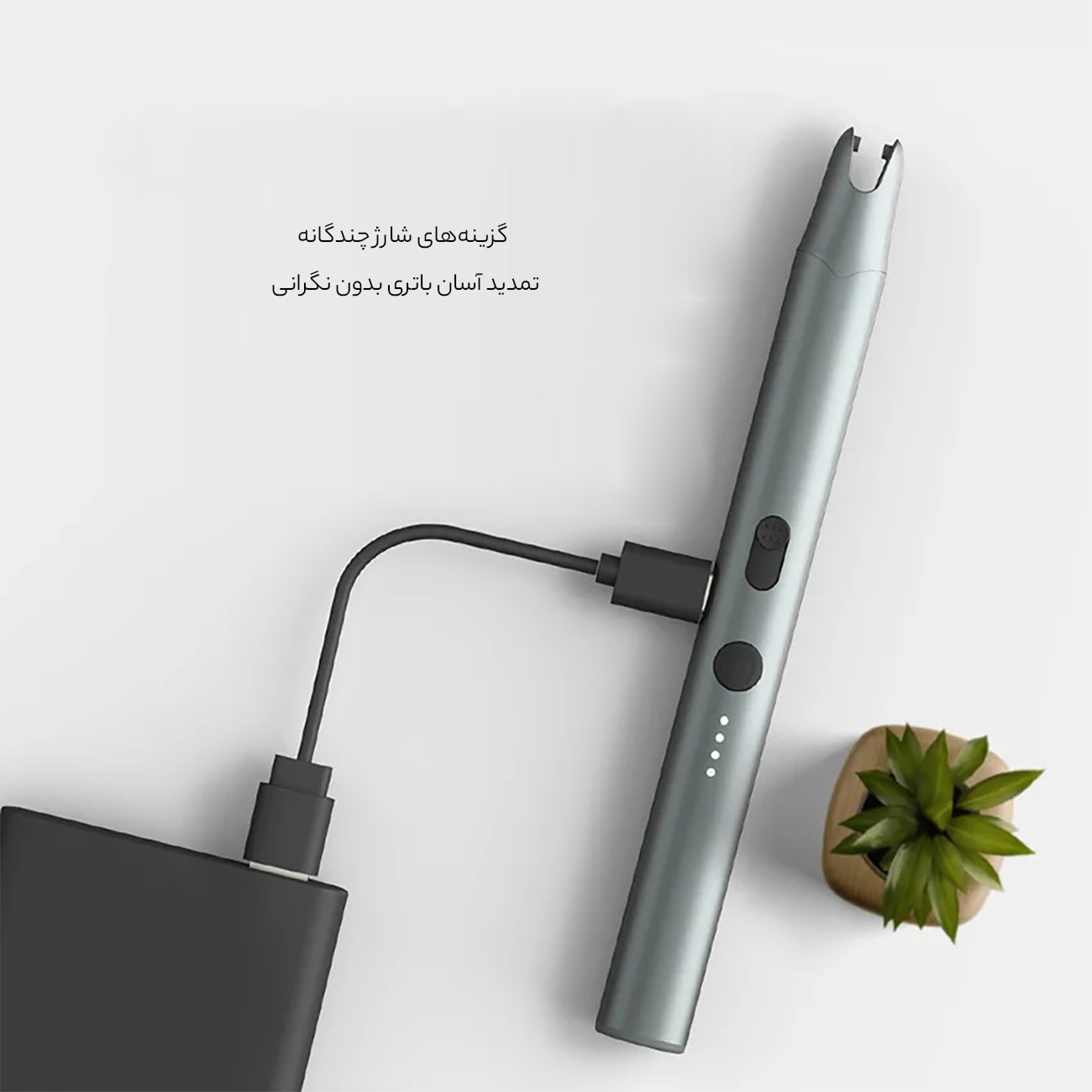 باتری داخلی این فندک ظرفیت 1.1 واتساعت دارد و پس از شارژ کامل، حدود 200 بار استفاده میشود. زمان شارژ آن تنها 3 ساعت است. نشانگر LED در بخش بالایی دستگاه، وضعیت شارژ باتری را به طور دقیق نشان میدهد تا کاربر بتواند از وضعیت شارژ اطلاع داشته باشد و در صورت نیاز، فندک را شارژ کند.