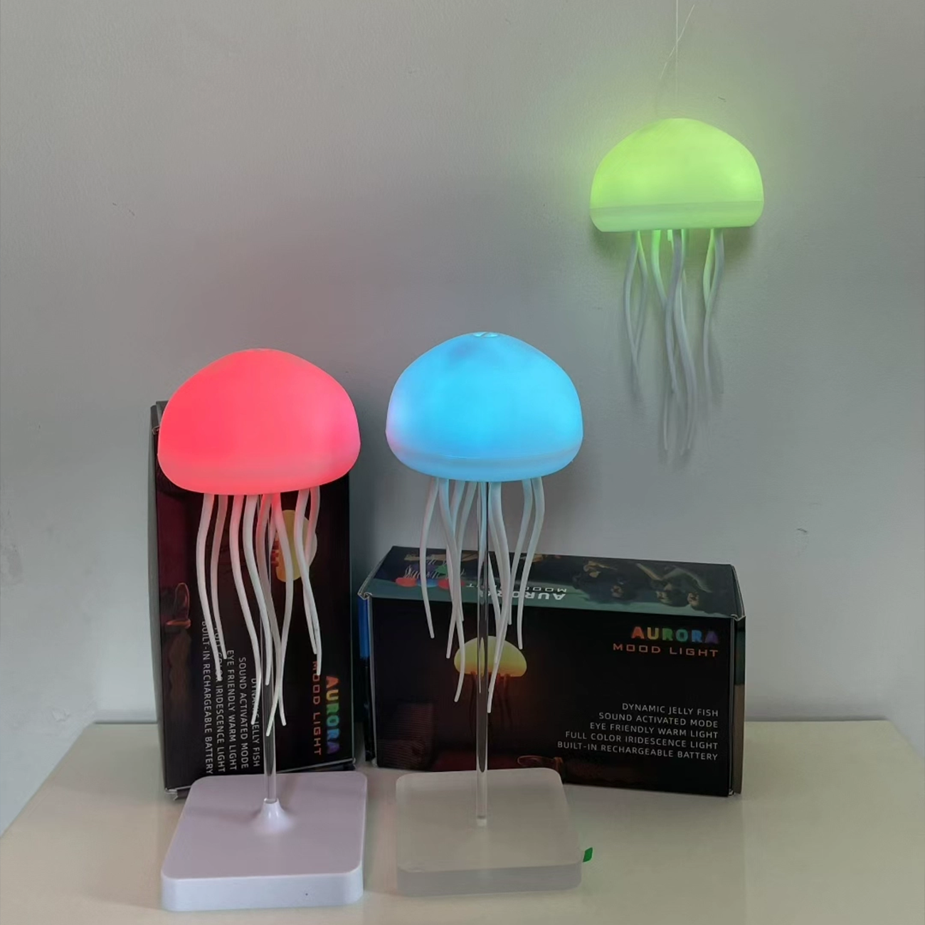 آباژور دکوری AURORA Mood Light مدل LJC-213 با عروس دریایی شناور، RGB ملایم، Type-C و 2-3 ساعت دوام، انتخابی برتر برای آرامش و دکوره. این چراغ رومیزی/آویزی با محفظه شفاف و فن بیصدا، اتاقت رو جادویی میکنه.