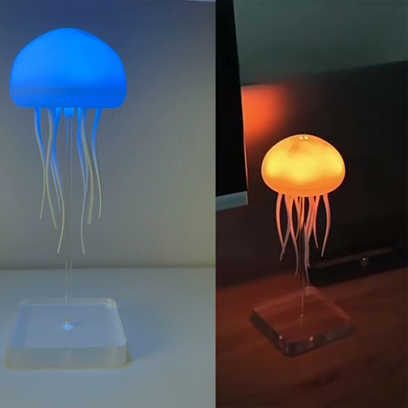 AURORA با محفظه شفاف و دو عروس سیلیکونی، حرکت ملایم شناوری رو شبیهسازی میکنه—حس تماشای آکواریوم واقعی، بدون صدا یا نگهداری. بدنه نرم و لبههای گرد، لمسش رو دلنشینه و برای بچهها یا بزرگسالان، گزینهای ایمن و جذابه. پایه رومیزی یا نخ آویز، نصب رو تو هر جایی—کنار تخت، سقف یا میز—آسون میکنه و ابعاد جمعوجور، جاگیری رو بدون زحمت ممکن میسازه.
