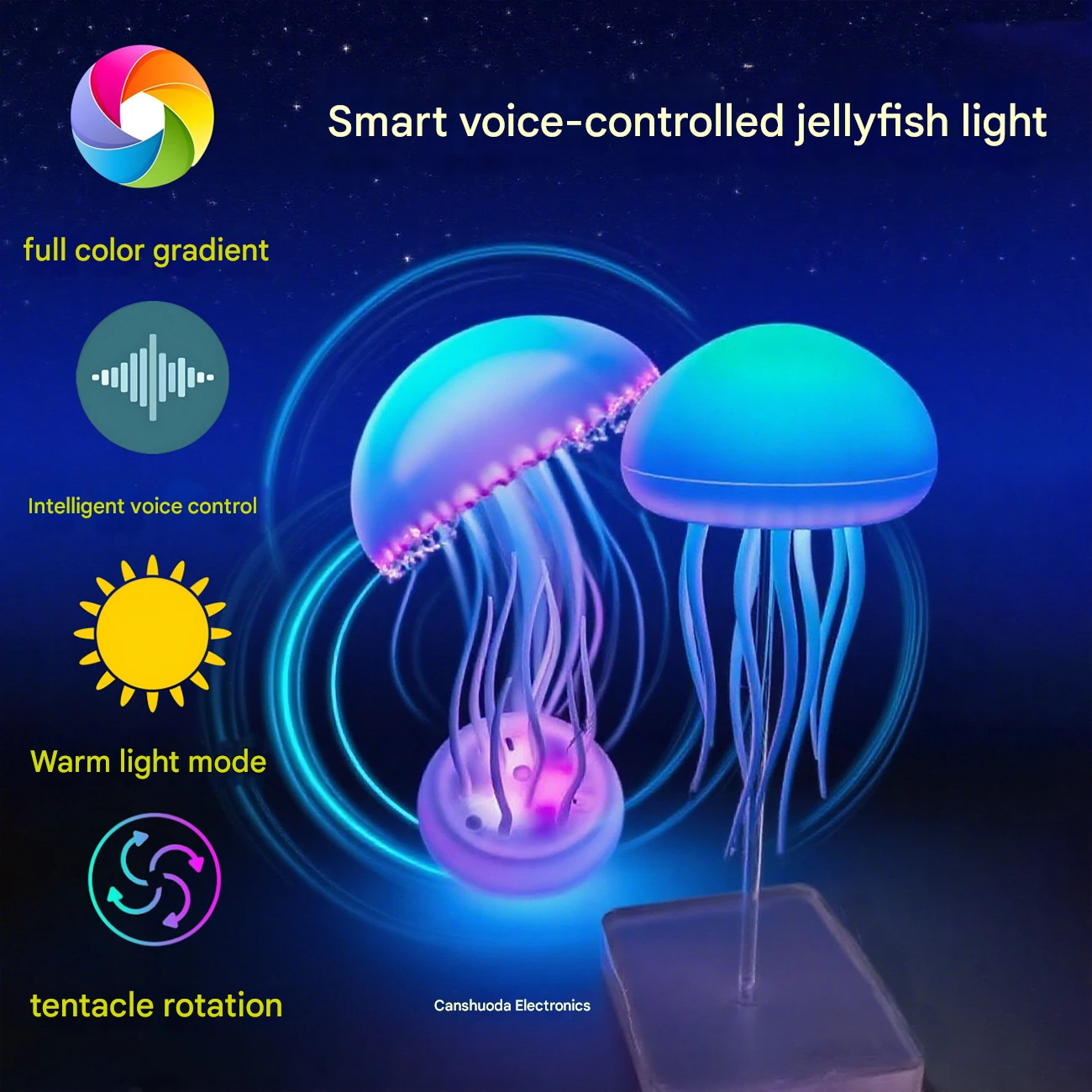 چراغ خواب دکوری قابل شارژ AURORA Mood Light؛ رویایی از نور و آرامش با طرح عروس دریایی
