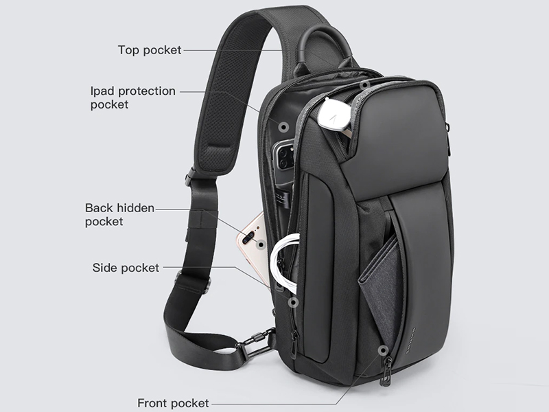 بنج برای این کیف یک بند پهن و مقاوم طراحی کرده که ارتفاع آن را میتوانید به راحتی تنظیم کنید و حتی به چپ یا راست تغییر دهید. این بند به صورت کج روی قفسه سینه و پشت قرار میگیرد و ظاهری اسپرت و جذاب به شما میدهد. داخل بند و پشت کیف از اسفنج نرم استفاده شده تا هیچ فشاری روی شانه یا کمرتان وارد نشود—حتی اگر ساعتها آن را به دوش بگیرید.