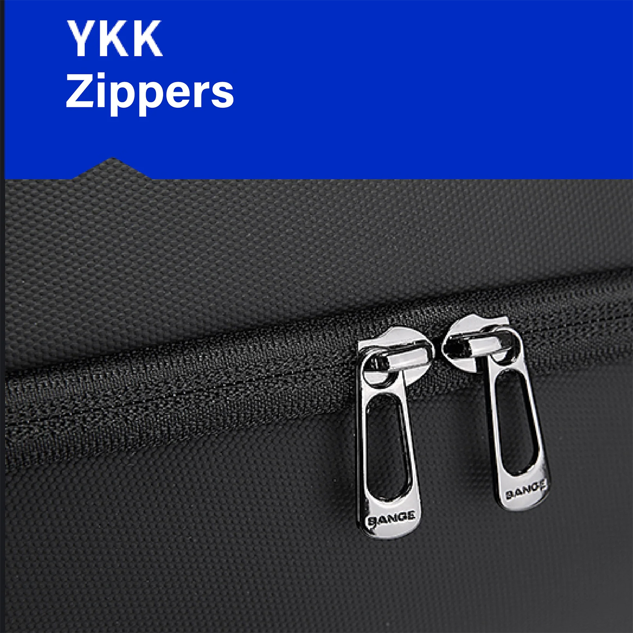 زیپهای بهکاررفته در کوله پشتی بنج از نوع فولادی ضدزنگ با دندههای نرم و زبانههای بلند هستند که گرفتن و باز کردنشان آسان است. این زیپها بادوام و روان هستند و حتی بعد از استفاده زیاد، گیر نمیکنند—کیفیتی که سالها دوام میآورد.