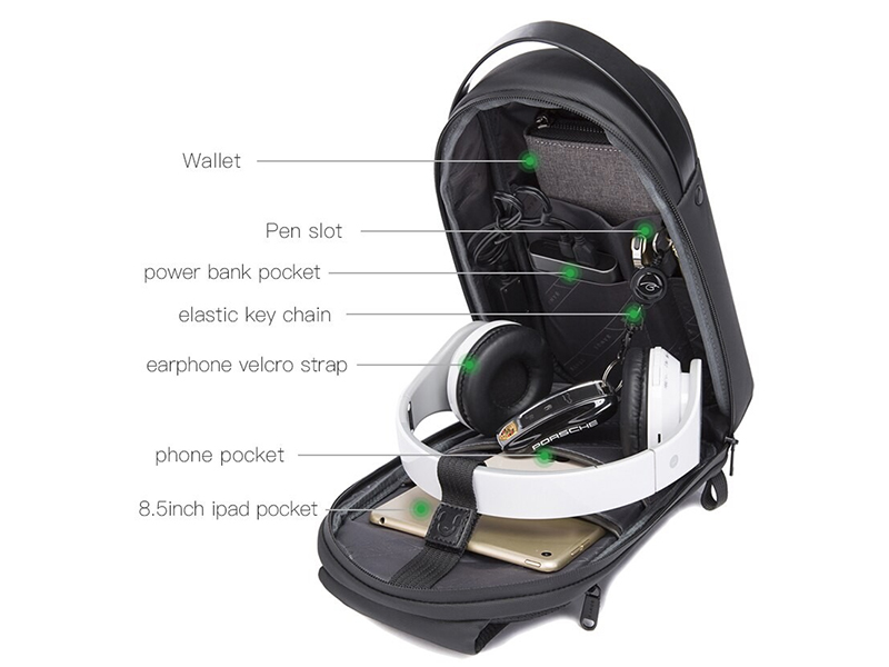 با ابعاد 31 × 17 × 9 سانتیمتر، این کوله جمعوجور به نظر میرسد، اما فضای داخلیاش حسابی جادار است. یک محفظه اصلی با جیبهای متعدد، جای کافی برای تبلت (تا 7.9 اینچ)، کتاب، کیف پول، چتر، هدفون، پاوربانک و دیگر وسایل ضروری فراهم میکند. طراحی هوشمند جیبها باعث میشود همه چیز مرتب و در دسترس باشد.