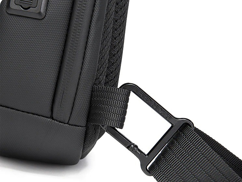 بنج برای راحتی بیشتر، یک بند پهن و مقاوم با سگک قابل تنظیم در نظر گرفته که فشار را از روی شانهها برمیدارد و امکان سفارشیسازی طول بند را فراهم میکند. این بند میتواند به سمت چپ یا راست تنظیم شود و بهصورت کج روی قفسه سینه یا پشت قرار میگیرد، که ظاهری اسپرت و شیک به کوله میدهد. همچنین، یک دسته کوچک و نرم در بالای کوله برای حمل دستی تعبیه شده که بسیار مقاوم و کاربردی است.