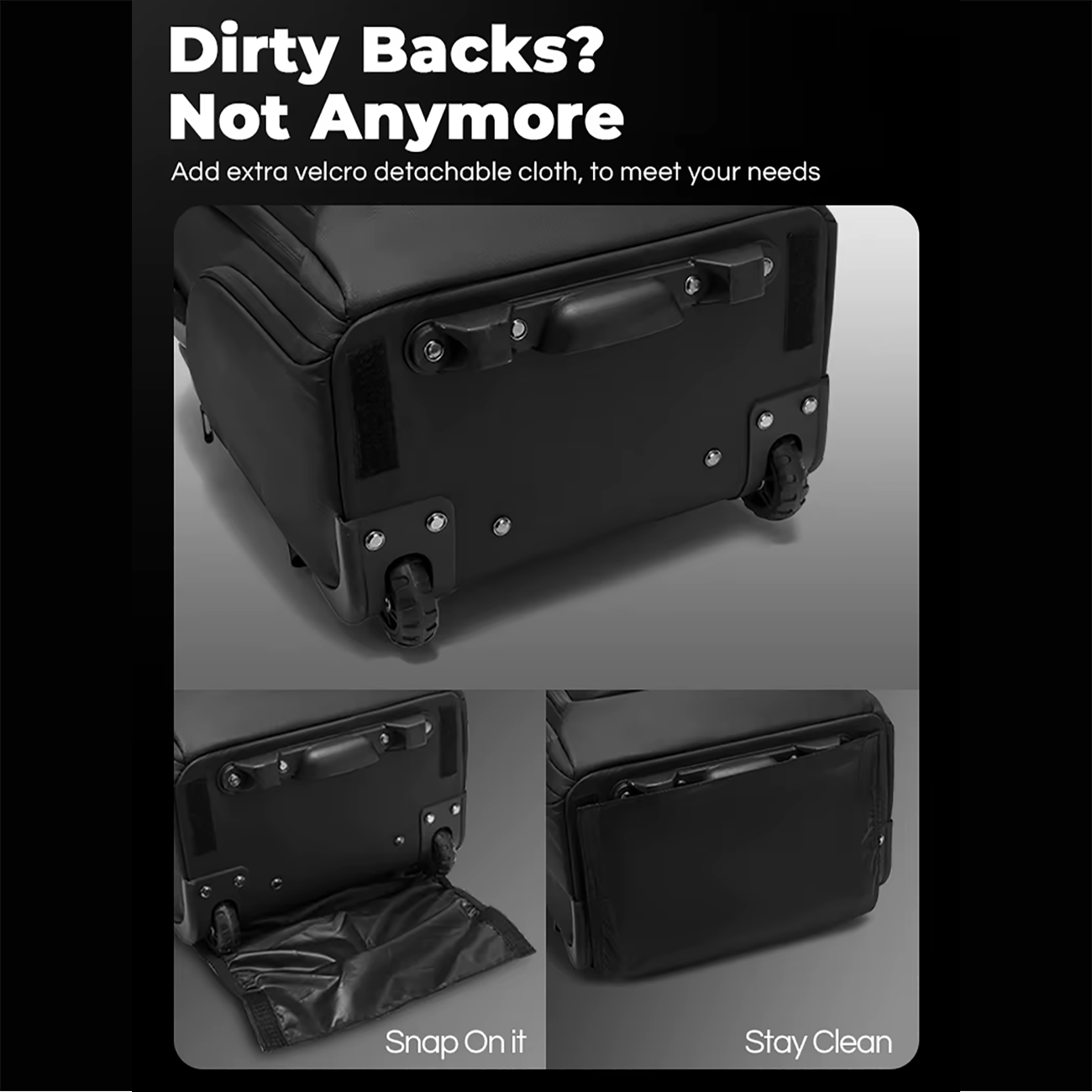 کاور محافظ چرخها: هنگامی که از کوله به عنوان پشتی استفاده میکنید، یک پوشش مخصوص، چرخها را میپوشاند تا هم از کثیف شدن لباسهای شما جلوگیری کند و هم ظاهری تمیز و یکدست ایجاد نماید.
