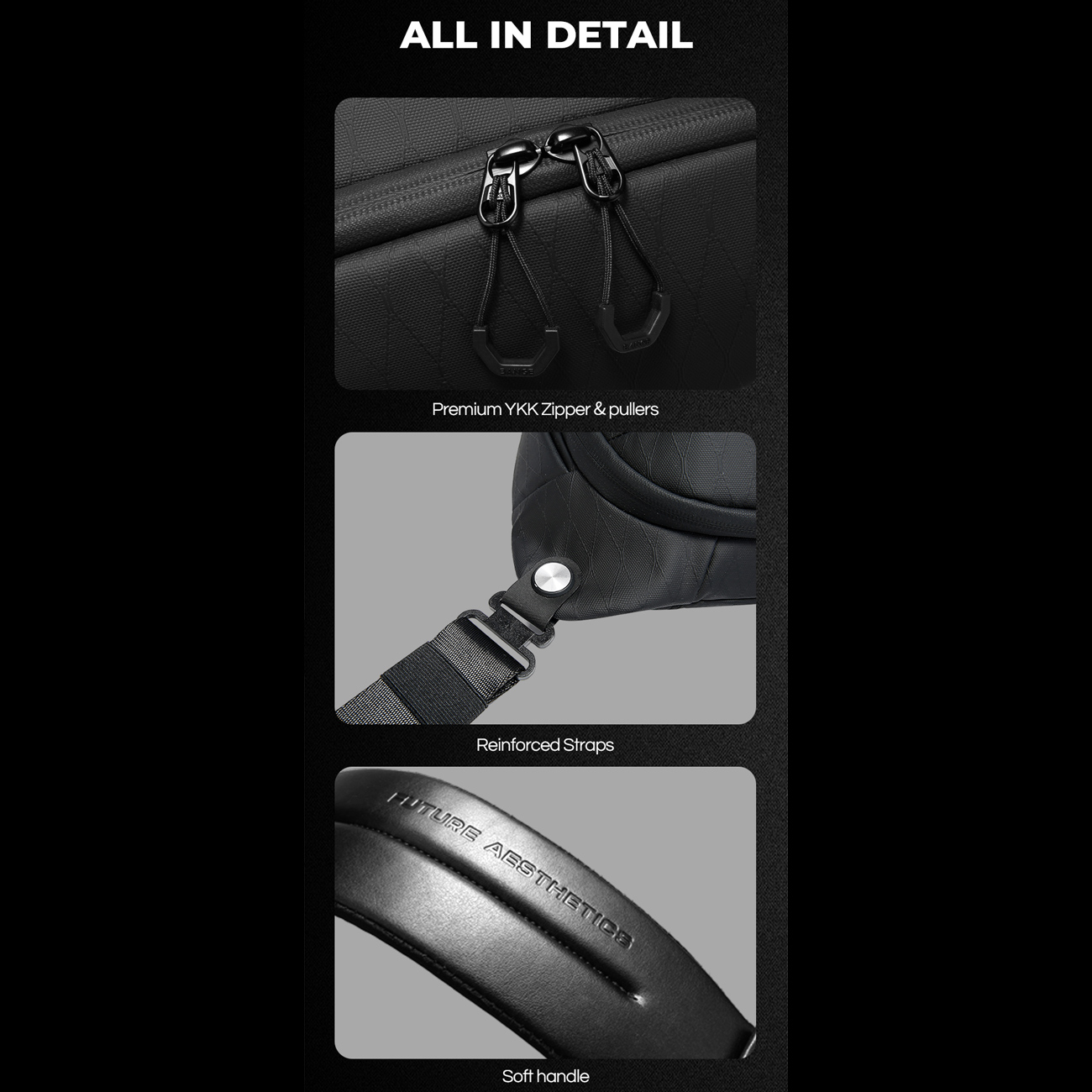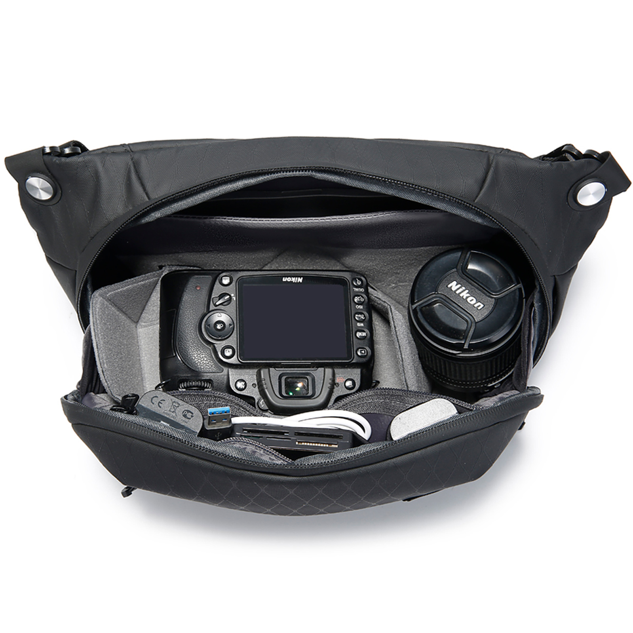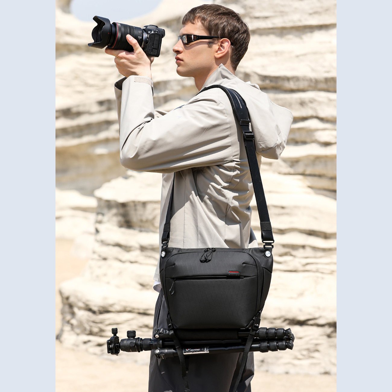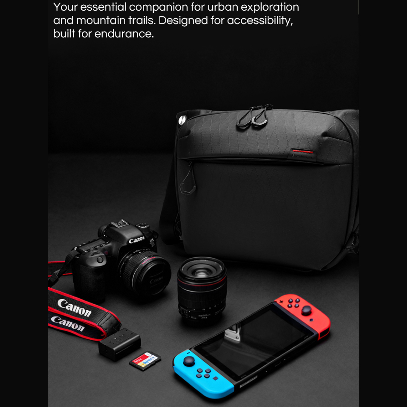 وجود جیب مخصوص لنز، محفظه اصلی، جیبهای زیپی و بخشهای سازماندهیشده باعث میشود تمامی وسایل شما همیشه مرتب و در دسترس باشند. طراحی آیندهنگرانه با سبک **FUTURE AESTHETICS** در کنار رنگ مشکی کلاسیک، کیف دوشی دوربین بنج را هم برای استفاده حرفهای و هم برای کاربرد روزمره به گزینهای شیک و کاربردی تبدیل کرده است.