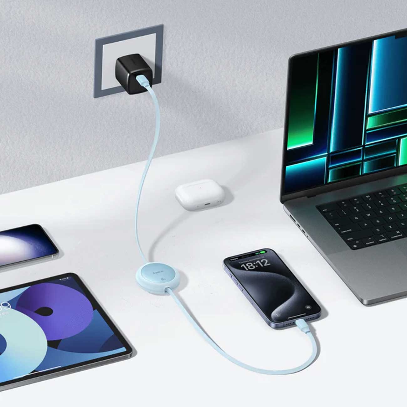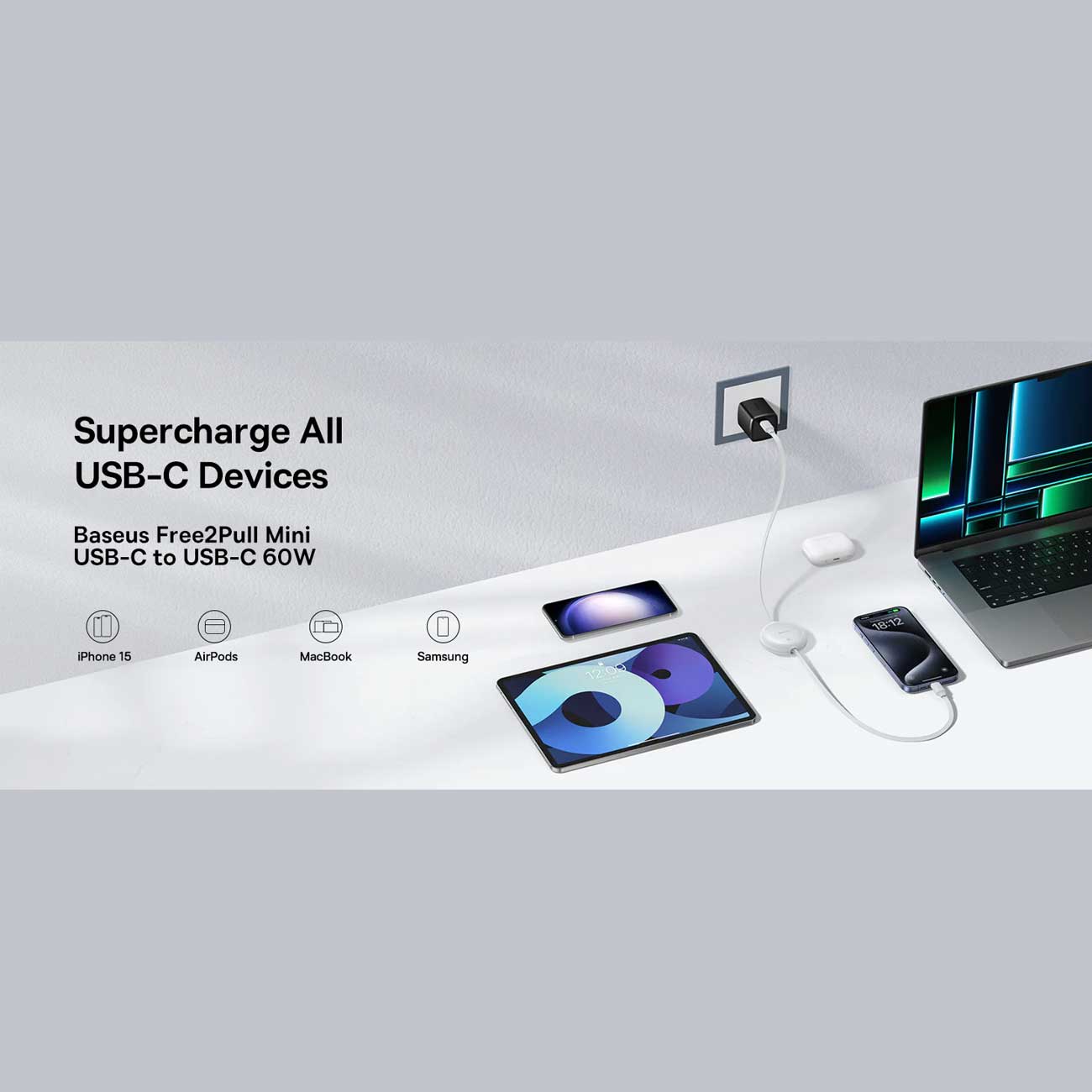 کابل شارژ دوسر تایپسی جمعشونده 60 وات یک متری بیسوس P10364500111 CB000088