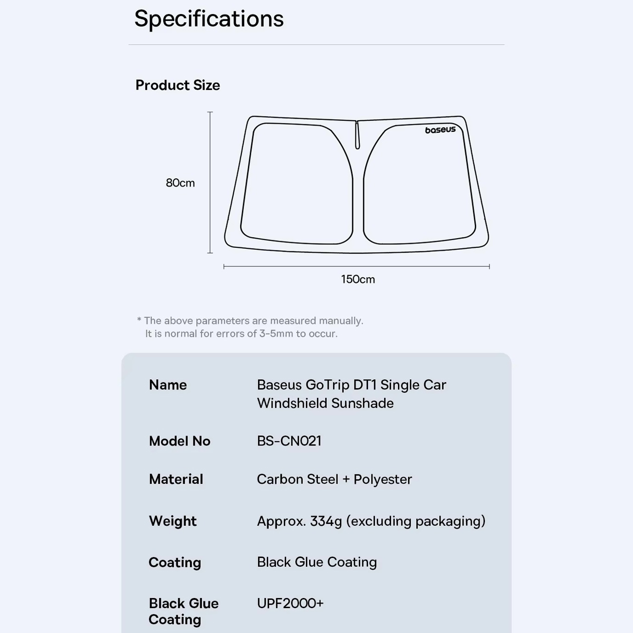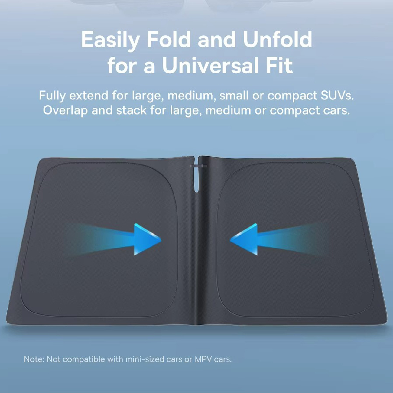 طراحی آفتابگیر بیسوس GoTrip DT1 بهگونهای است که با اکثر خودروهای سواری و شاسیبلند سازگاری کامل دارد. ابعاد ۱۵۰×۸۰ سانتیمتری آن بهراحتی روی شیشه جلو قرار میگیرد و با استفاده از چسب Velcro در محل آینه، بهصورت ایمن ثابت میشود. قابلیت تا شدن و جمعآوری سریع، حمل و نگهداری محصول را بسیار آسان کرده است.
