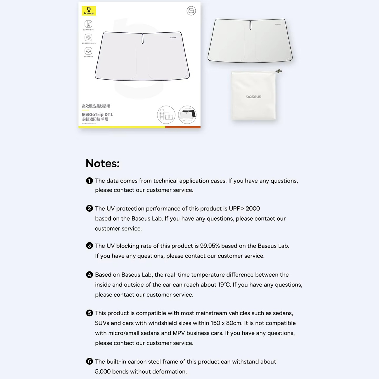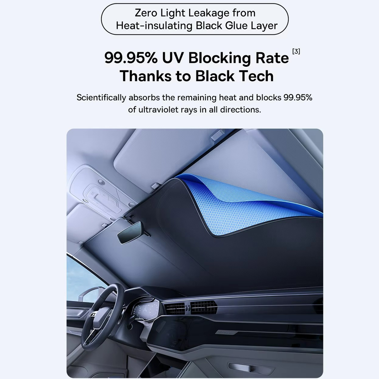 پارچه بهکاررفته در آفتابگیر شیشه جلو خودرو Baseus دارای پوشش بازتابنده سبک و مقاوم است که بیشترین میزان انعکاس اشعههای مضر UV را فراهم میکند. این ویژگی از آسیب دیدن داشبورد، صندلیها و سایر اجزای داخلی خودرو جلوگیری کرده و با درجه حفاظتی UPF2000+ حتی در شرایط برفی نیز عملکرد مؤثری دارد.