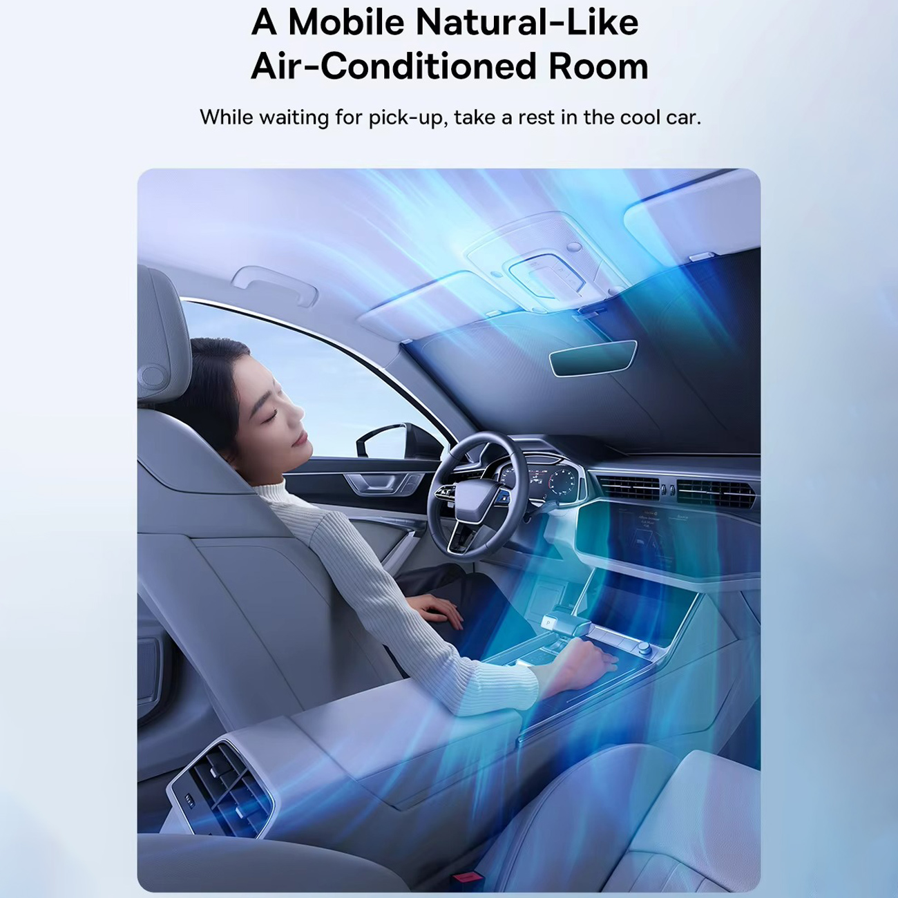پارچه Ice-Core با تراکم بالا در آفتابگیر خودرو بیسوس GoTrip DT1، گرما را جذب کرده و دمای کابین را تا ۱۹ درجه سانتیگراد کاهش میدهد. این فناوری حس وجود یک خنککننده طبیعی در خودرو را ایجاد میکند و حتی پس از توقف طولانیمدت، به حفظ دمای پایین فضای داخلی کمک میکند.