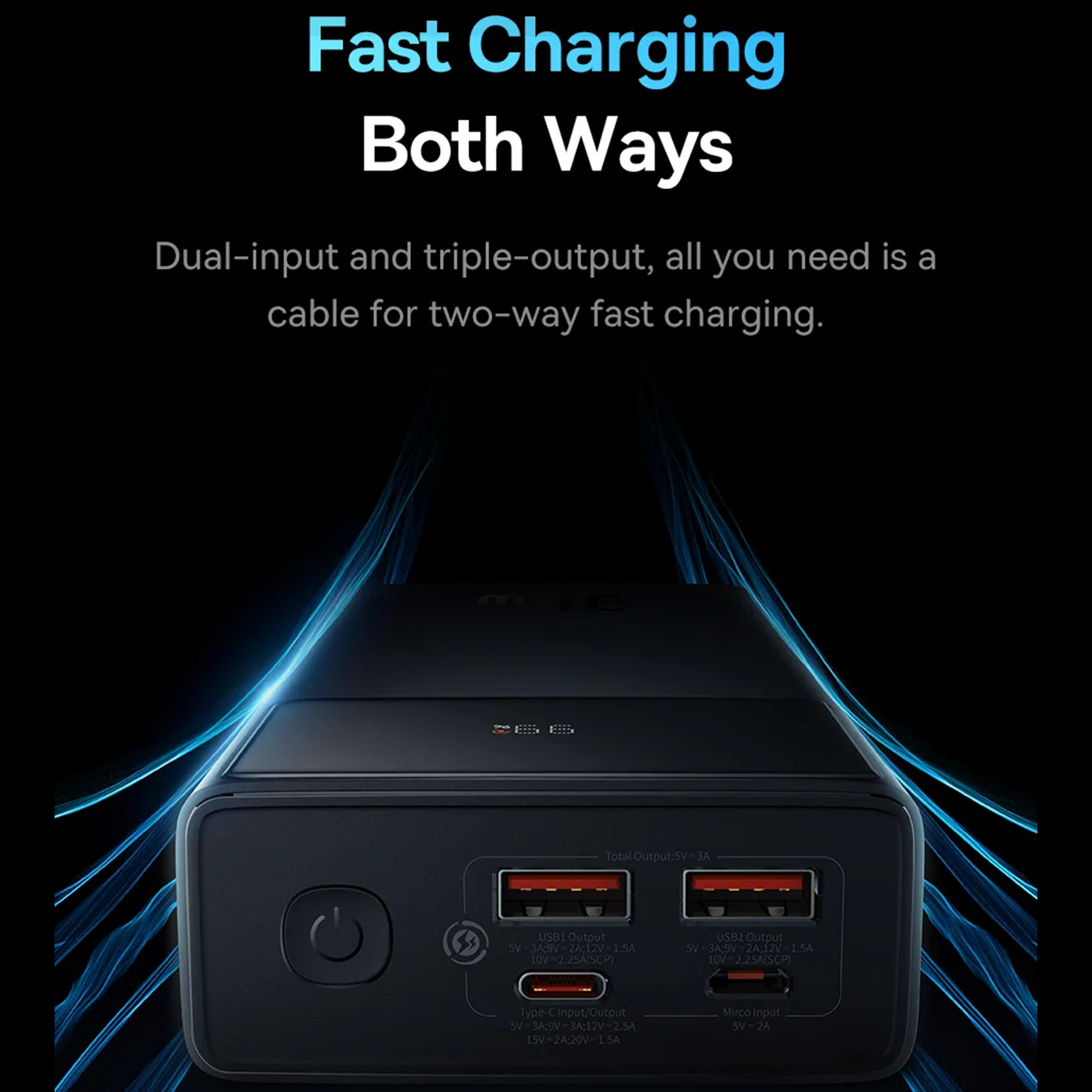 پاوربانک بیسوس از طیف گستردهای از پروتکلهای شارژ سریع پشتیبانی میکند که امکان شارژ فوقسریع اکثر دستگاههای مدرن را فراهم میسازد. پورت Type-C آن با توان 30 وات، امکان پر کردن باتری گوشیها و تبلتهای سازگار را در کمترین زمان ممکن فراهم میکند.