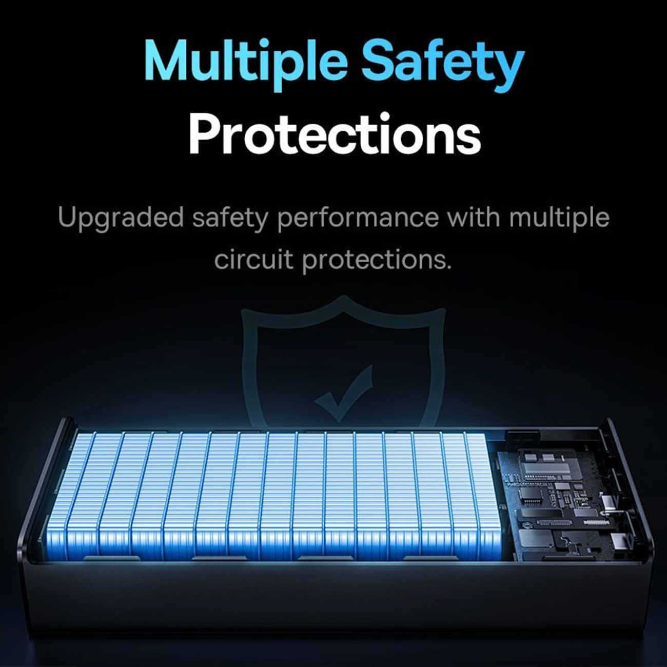 این پاوربانک مجهز به یک تراشه هوشمند حفاظتی است که از دستگاههای متصل و خود پاوربانک در برابر خطرات زیر محافظت میکند: