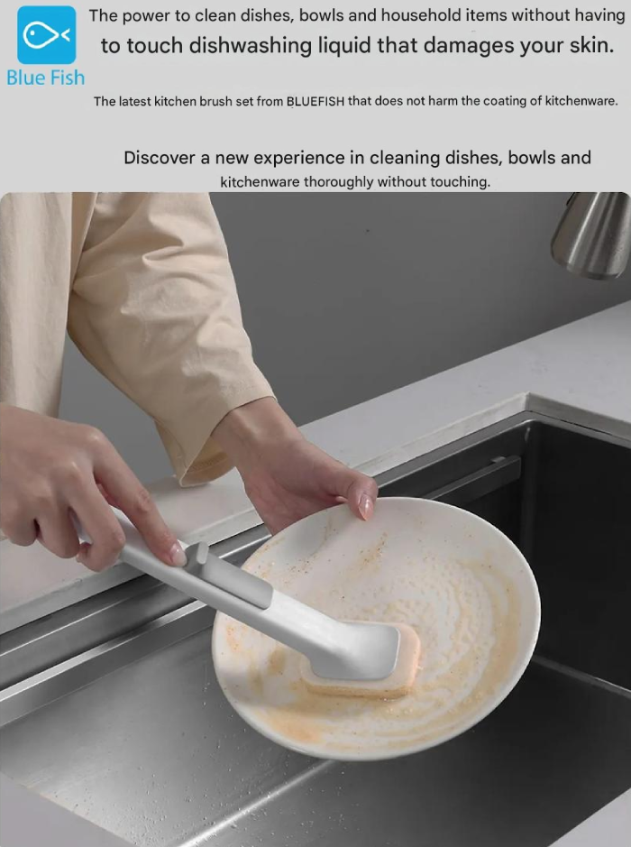 فرچه ظرفشویی دیواری Bluefish مدل PB01؛ تمیزکاری امن و بدون تماس با شوینده