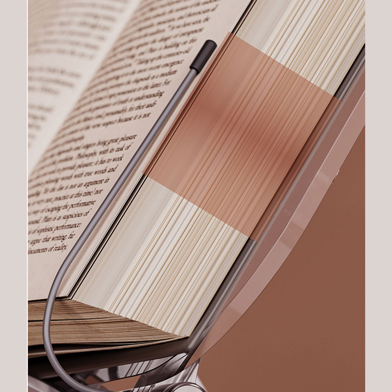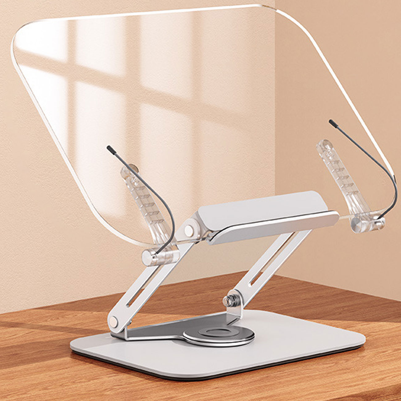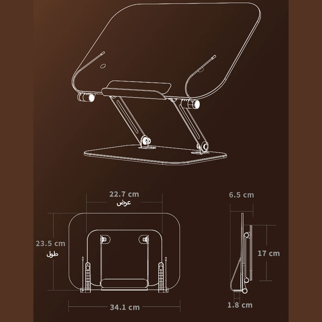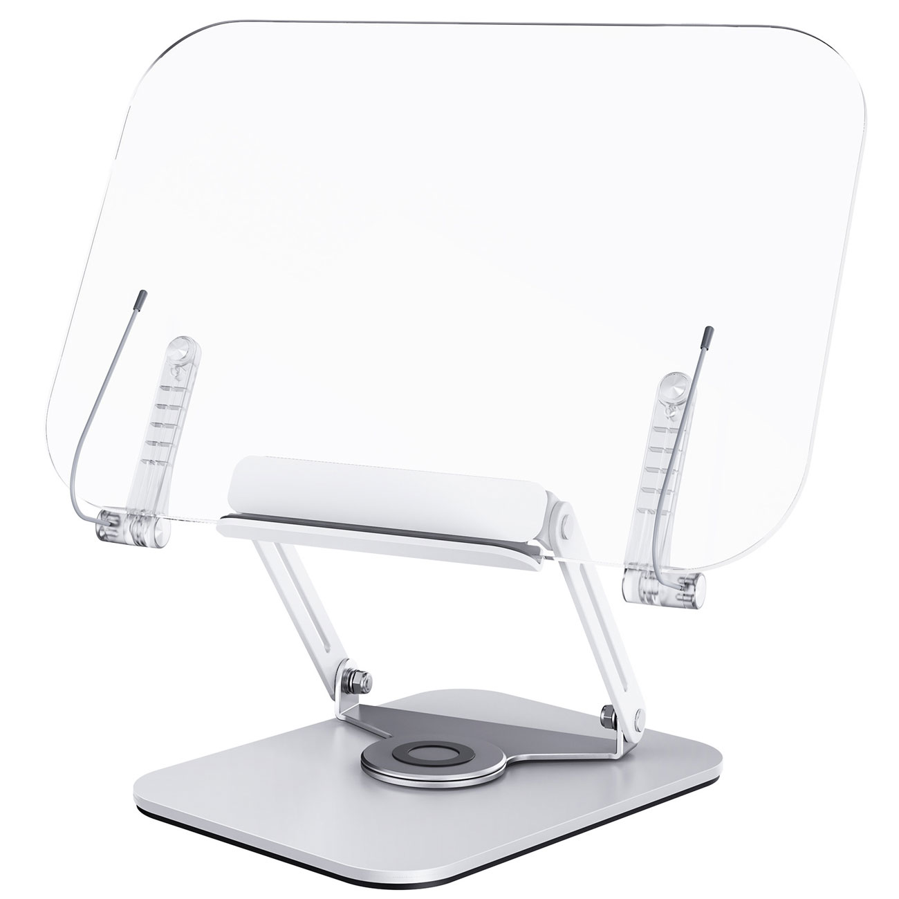 پایه نگهدارنده کتاب R15 امکان تنظیم ارتفاع تا ۱۷ سانتیمتر و تغییر زاویه دید تا ۳۶۰ درجه را فراهم میکند. این ویژگی به شما کمک میکند تا کتاب یا تبلت خود را در بهترین موقعیت ممکن برای مطالعه یا استفاده طولانیمدت قرار دهید.