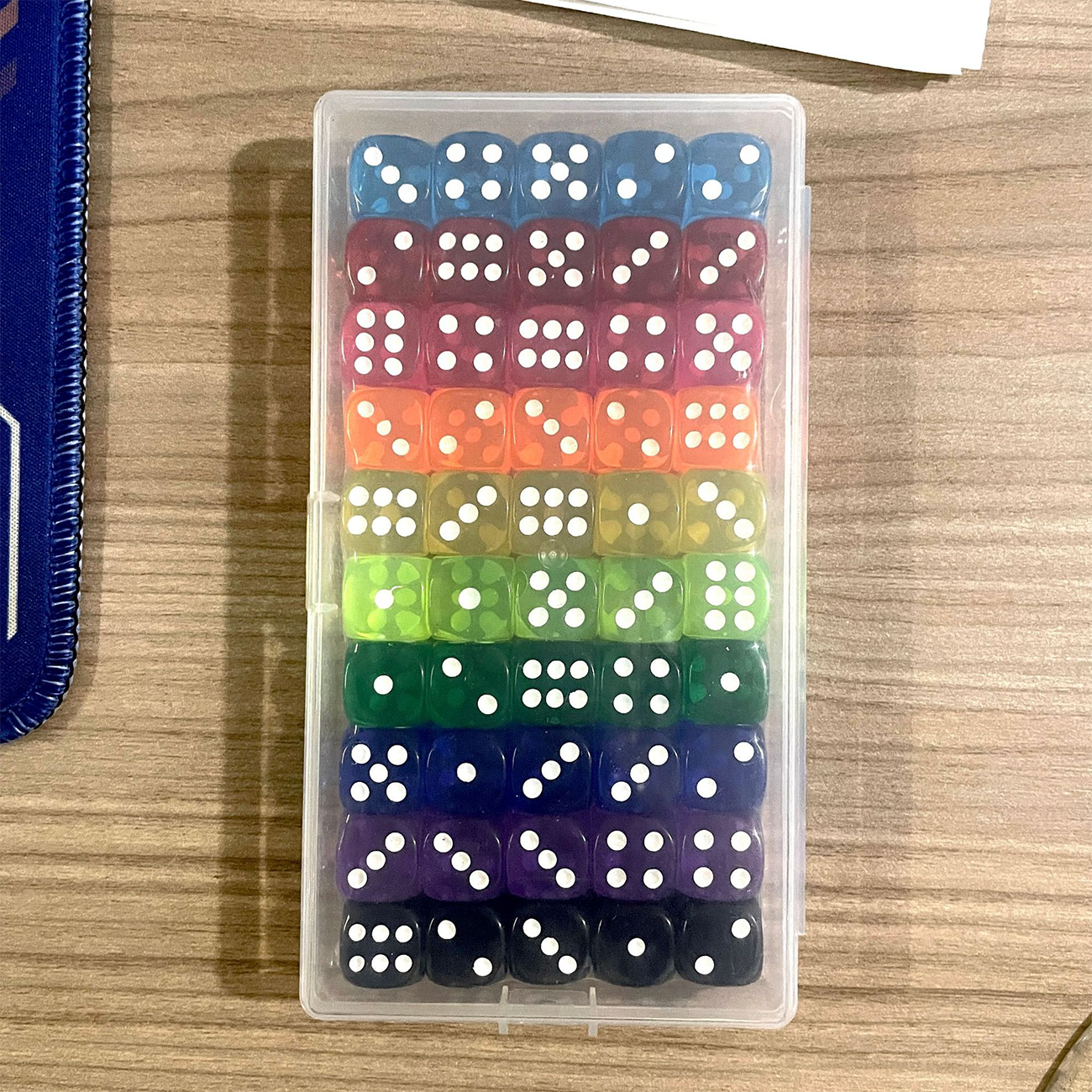 تعداد بالا (۵۰ عدد): این تعداد نه تنها برای چندین گروه بازیکن کافی است، بلکه جایگزین مناسبی برای تاسهای گمشده یا فرسوده محسوب میشود.