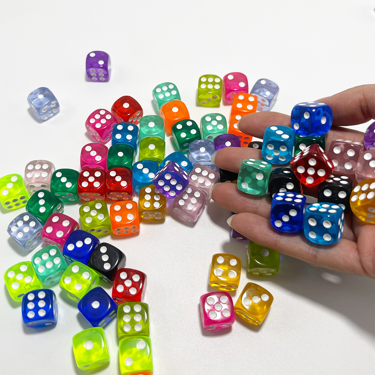 جنس اکریلیک شفاف با جلوه کریستالی: تاسها از اکریلیک با کیفیت بالا ساخته شدهاند که نور را به زیبایی منعکس کرده و ظاهری درخشان و لوکس ایجاد میکنند.