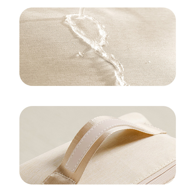 Large از ابریشم شاندونگ بازیافتی ساخته شده که بافت ظریف، درخشندگی طبیعی و مقاومت در برابر ضربه، سایش و رطوبت داره. این جنس دوستدار طبیعت، بدون تغییر شکل، سالها دوام میآره و ظاهرش رو همیشه تازه نگه میداره. ضدآب بودن، لکهها رو دفع میکنه و تمیز کردن رو آسون میکنه—ایدهآل برای سفرهای بارونی یا استفاده روزانه.