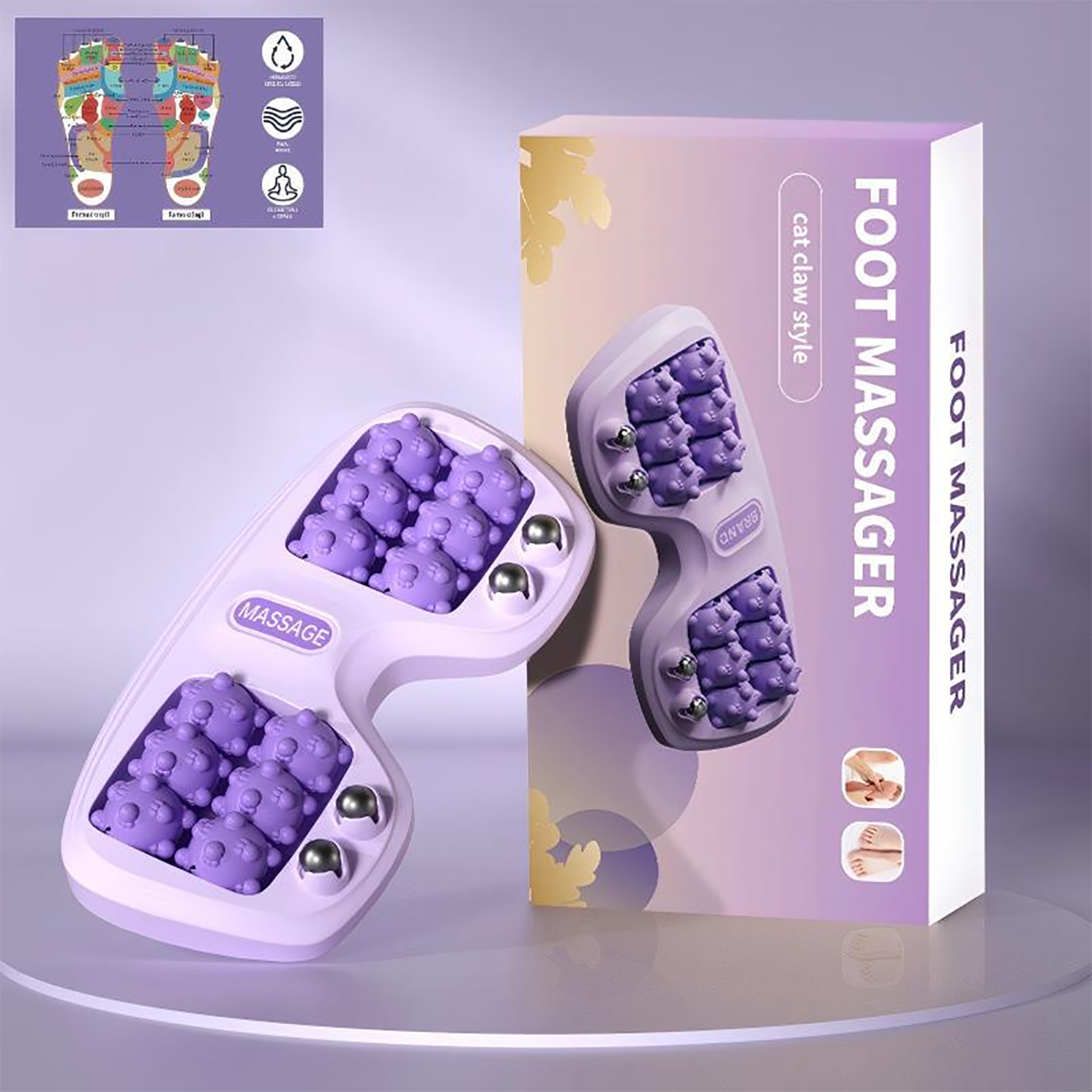 | محتویات جعبه | 1 عدد ماساژور پا/ 1 عدد نقشه نقاط طب سوزنی |