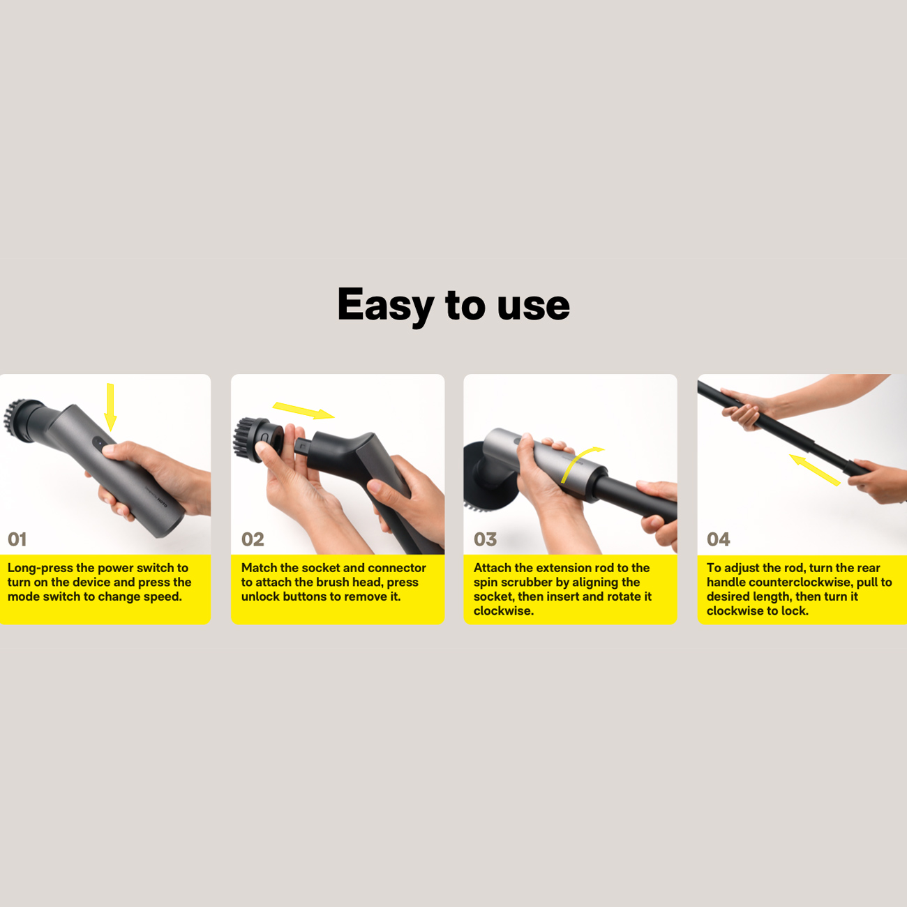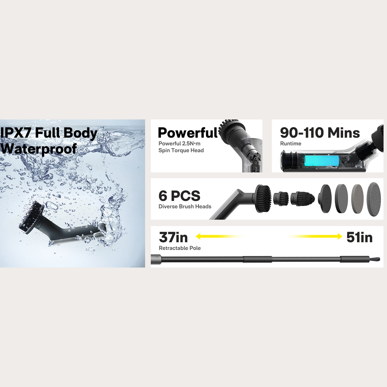 با گواهی ضد آب IPX7، میتوانید با خیال راحت از این اسکرابر در حمام، آشپزخانه، کنار استخر و فضای باز استفاده کنید. کل دستگاه—از بدنه تا موتور—در برابر پاشش آب و حتی غوطهوری موقت در آب مقاوم است. این ویژگی نه تنها ایمنی را تضمین میکند، بلکه شستشوی خود دستگاه پس از اتمام کار را نیز بسیار آسان میسازد.