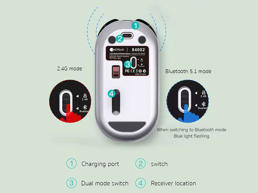 Coteetci beetle dual mode wireless mouse 84002-BK 84002-WH