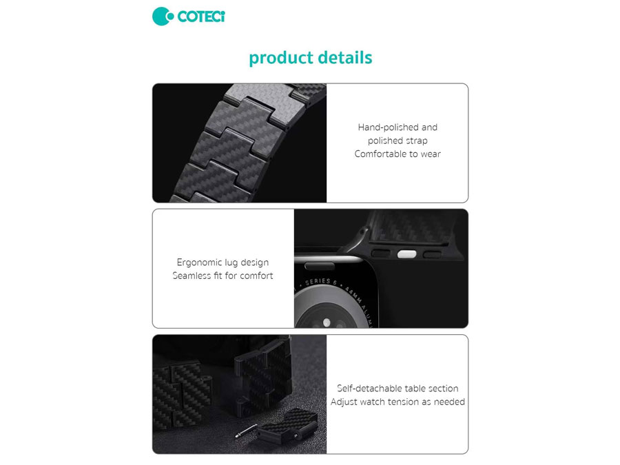 بند کوتسی 22008 با بافت زنجیروار منحصربهفرد از فیبر کربن باکیفیت ساخته شده که ظاهری لوکس و مدرن به اپل واچتون میبخشه. این مواد، در برابر خوردگی، آسیبهای روزمره و حتی عرق فوقالعاده مقاوم هستن و بدون تغییر رنگ یا ساییدگی، سالها مثل روز اول میمونن.