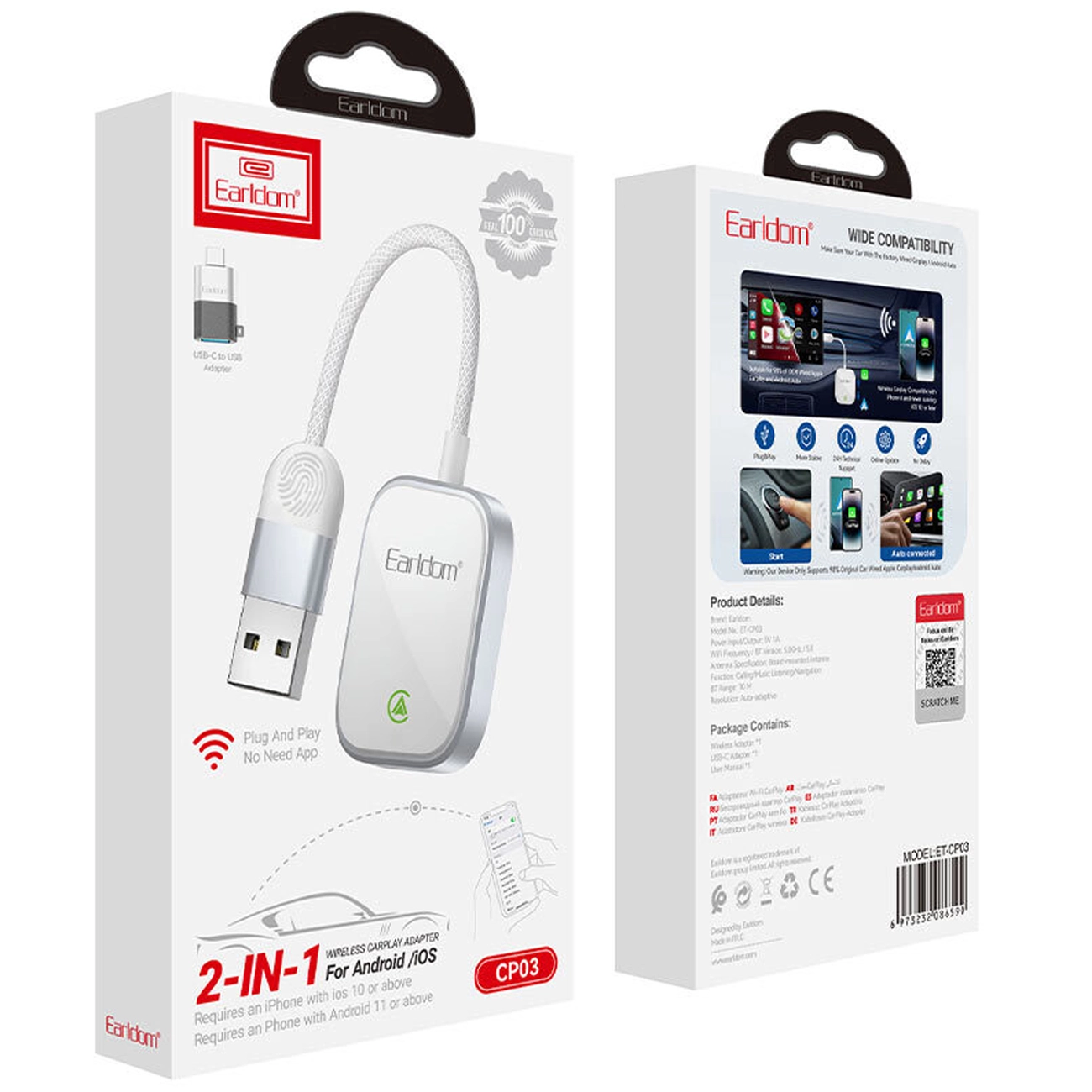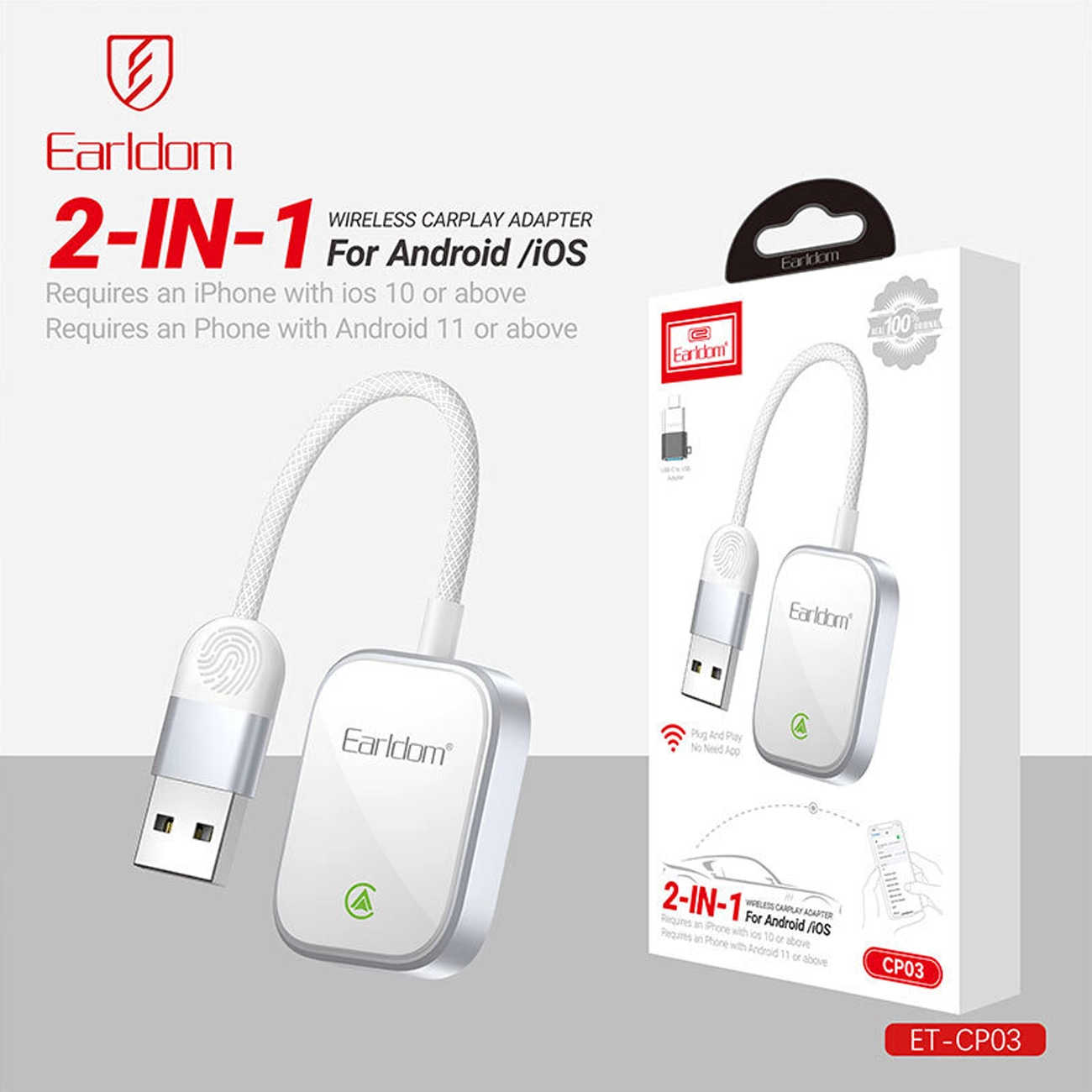 دانگل وایرلس اپل CarPlay و Android Auto یواسبی ارلدام CP03 با دانگل تایپسی