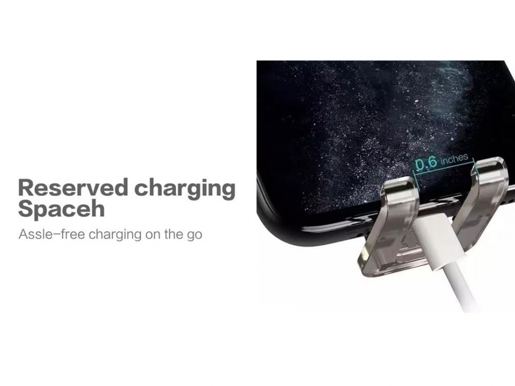 گیره پایین هولدر دارای شیاری برای کابل شارژ است که امکان اتصال همزمان کابل را فراهم میکند—بدون نیاز به جدا کردن گوشی. این ویژگی، برای مسیریابی طولانی یا تماسهای کاری، شارژ مداوم را تضمین میکند و نگرانی تمام شدن باتری را از بین میبرد.