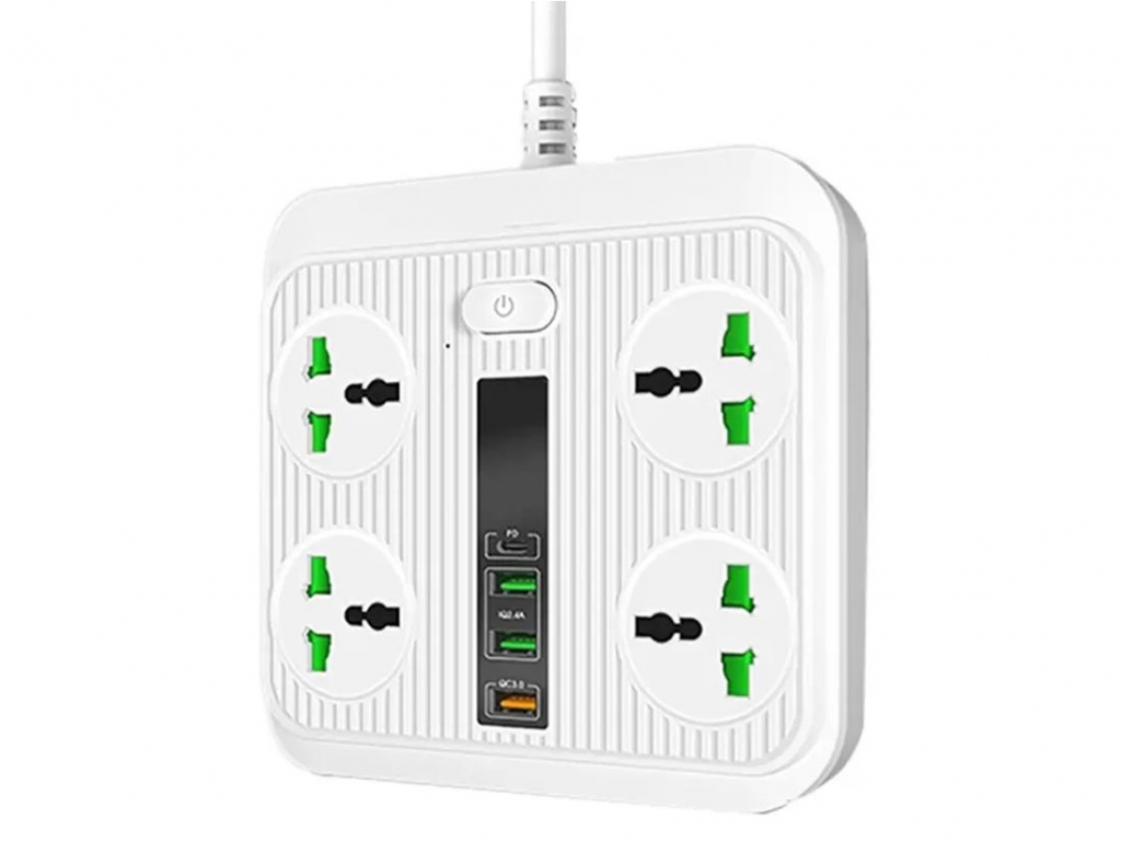 این چندراهی با فراهم آوردن ۴ پریز AC استاندارد و ۴ پورت شارژ سریع (شامل ۳ پورت USB-A و ۱ پورت USB-C دوطرفه)، امکان اتصال و شارژ همزمان تا ۸ دستگاه را برای شما فراهم میسازد. دیگر نیازی به چندین آداپتور و اشغال کردن تمام پریزهای دیوار نیست. طراحی جهانی پریزها نیز امکان استفاده با اکثر دو شاخههای رایج را به شما میدهد.