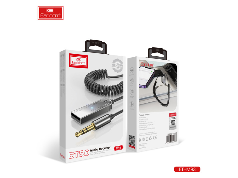 ET-M93 با پورت USB برای تأمین نیرو (از فندکی، پاوربانک یا ضبط خودرو) و جک 3.5 میلیمتری AUX برای اتصال به پخشکننده، کار را آسان میکند. فقط USB را وصل کنید، جک را به ورودی صوتی (ضبط، اسپیکر یا تلویزیون) متصل نمایید، بلوتوث گوشی را روشن کنید و متصل شوید—موسیقی بدون سیم و با کمترین تأخیر پخش میشود. بلوتوث 5.0 اتصال پایدار تا 10 متری ارائه میدهد و با گوشیهای اندروید/iOS، کامپیوتر، آیپاد یا MP3/MP4 پلیر سازگار است. دیگر سیمهای درهم را فراموش کنید؛ ET-M93 همه چیز را مرتب و بیدردسر میکند.