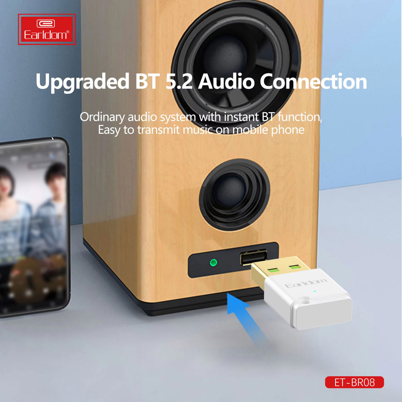بلوتوث 5.2 ET-BR08 اتصال پایدار و سریع تا 10 متری را تضمین میکند—حتی در فواصل دورتر، سرعت انتقال اطلاعات و پخش آهنگ بدون مشکل است. فقط دانگل را به پورت USB (ضبط، اسپیکر یا تلویزیون) وصل کنید، بلوتوث گوشی را روشن کنید و متصل شوید—موسیقی فوراً پخش میشود.