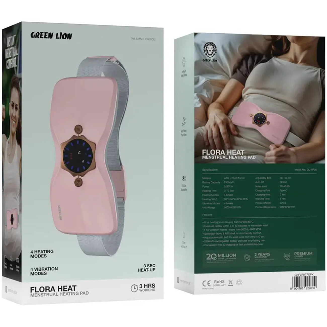 کمربند حرارتی پریودی گرین لاین درد و ناراحتی قاعدگی را به سرعت کاهش میدهد. این پد تنها در3 تا 10 ثانیه گرم میشود و چهار سطح دما بین 50 تا 65 درجه سانتیگراد دارد. گرمایش سریع باعث تسکین فوری و راحتی شما در طول دوره قاعدگی میشود. با استفاده از این محصول، دیگر نیازی به تحمل درد طولانی نخواهید داشت.