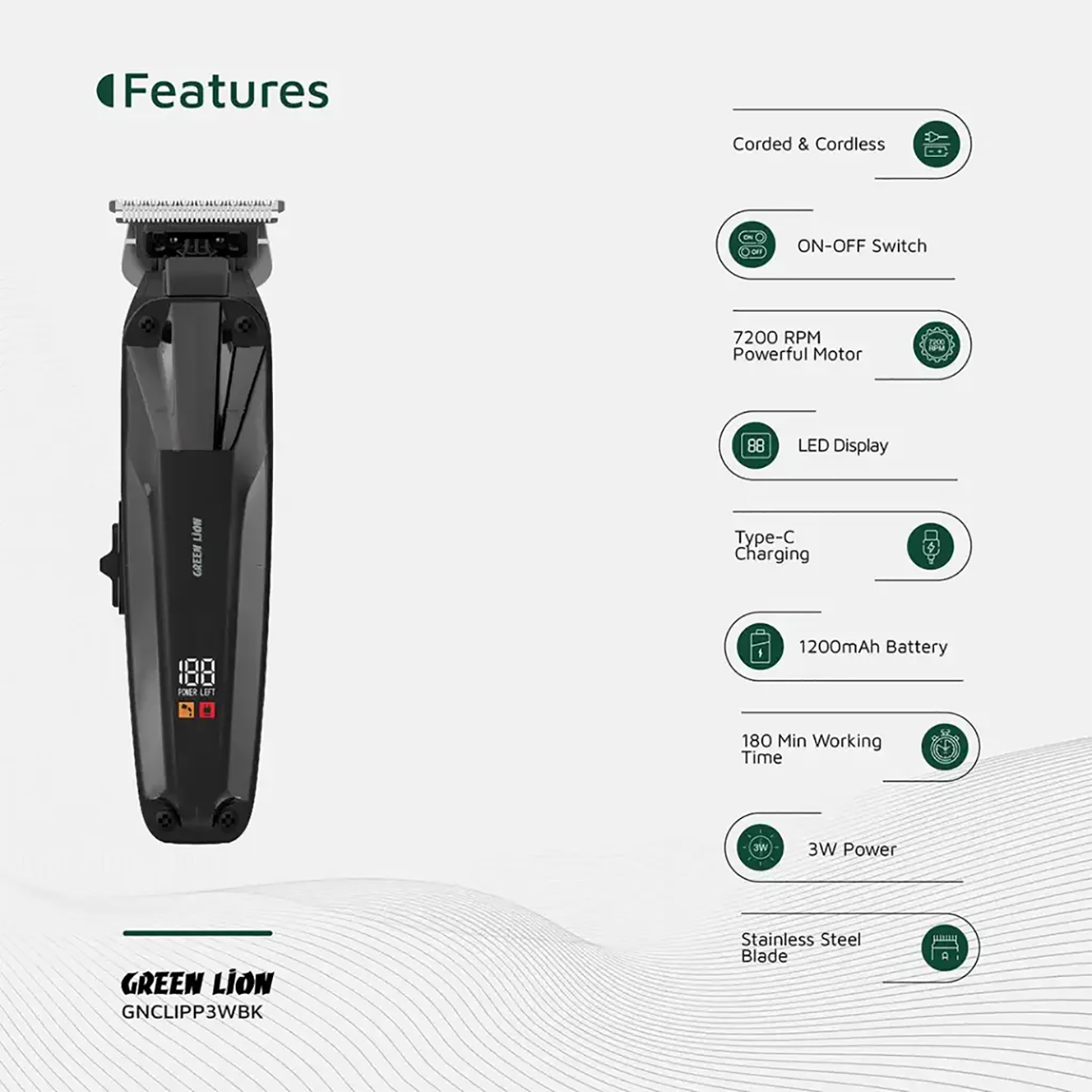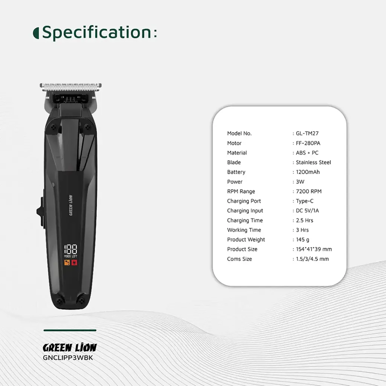 Green line Professional Rechargeable Clipper Clip Master GNCLIPP3WBK GL-TM27