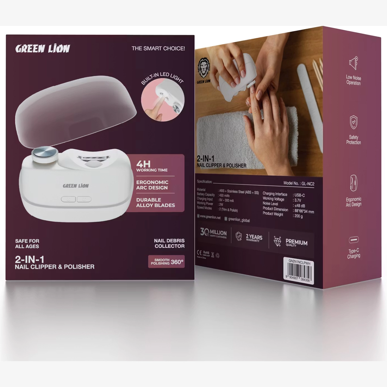 ناخن گیر و سوهان شارژی گرین لاین Green Lion مدل GN2N1NCLPWH