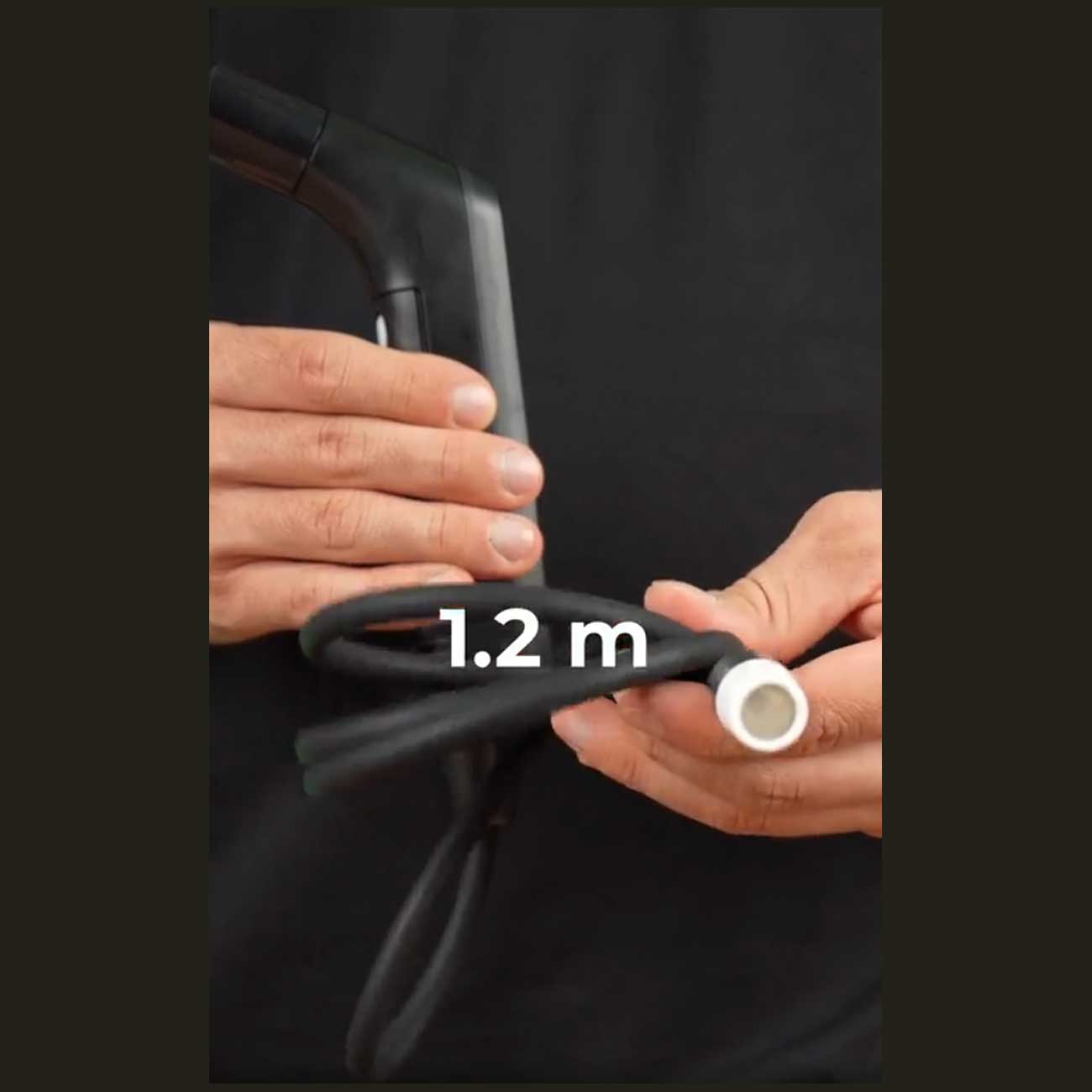 شلنگ 1.2 متری این دوش قابل حمل، به شما آزادی عمل بیشتری میدهد و امکان دسترسی آسان به همه نقاط را فراهم میکند. انعطافپذیری شلنگ باعث میشود در هر شرایطی بتوانید به راحتی و بدون محدودیت محل مورد نظر را شستشو دهید، حتی در مکانهای کوچک و محدود. این ویژگی، استفاده از دستگاه را بسیار راحتتر و کارآمدتر میکند.