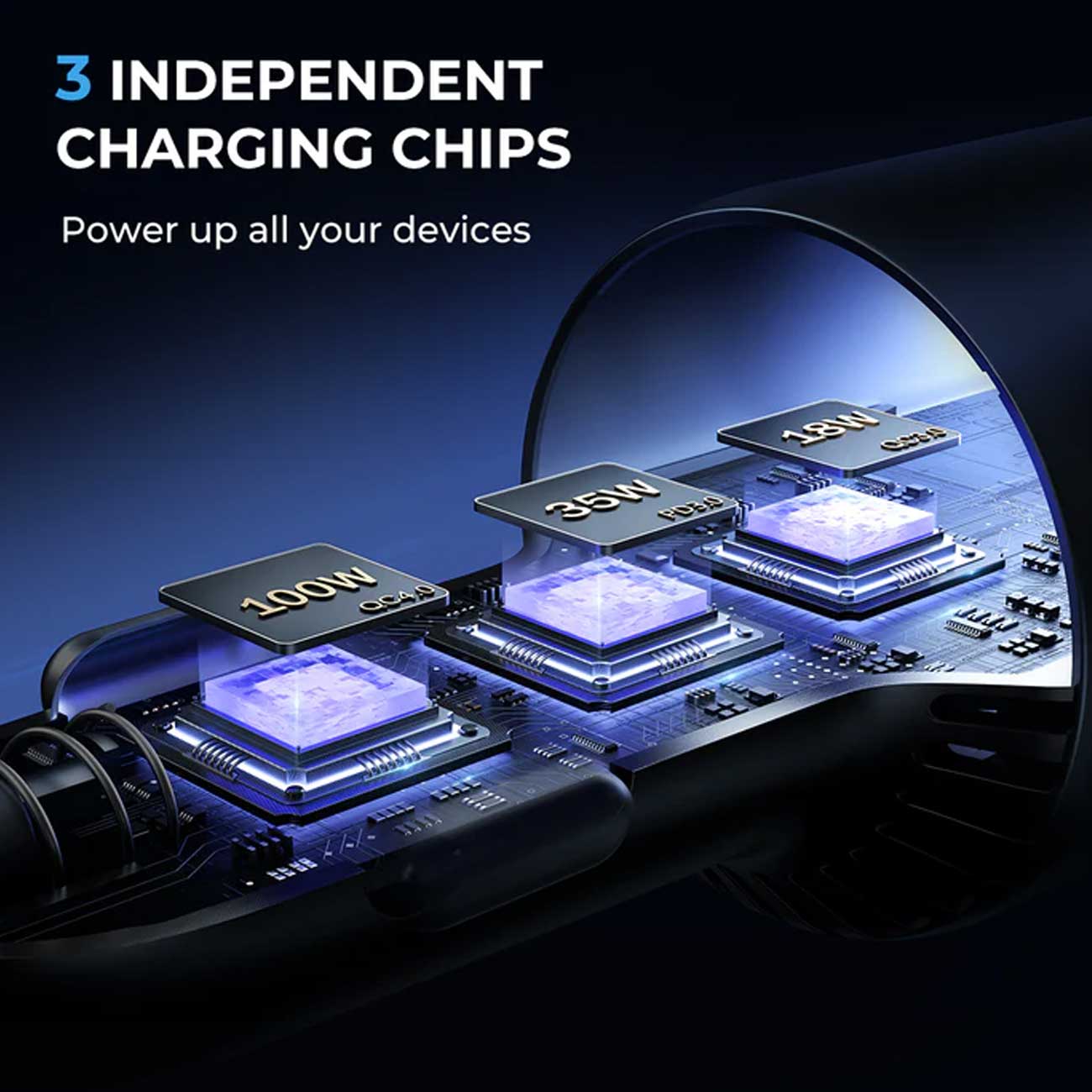 این شارژر فندکی از فناوری Power Delivery (PD) و Quick Charge 3.0 (QC3.0) بهره میبرد که برقرسانی را سریعتر کرده و باتری را در کمترین زمان شارژ میکند. پشتیبانی از QC4.0، PD3.0، PPS، QC3.0 و FCP، سازگاری با دستگاههای مختلف را فراهم میکند. دو پورت Type-C و یک پورت USB امکان شارژ همزمان سه دستگاه را میدهد.