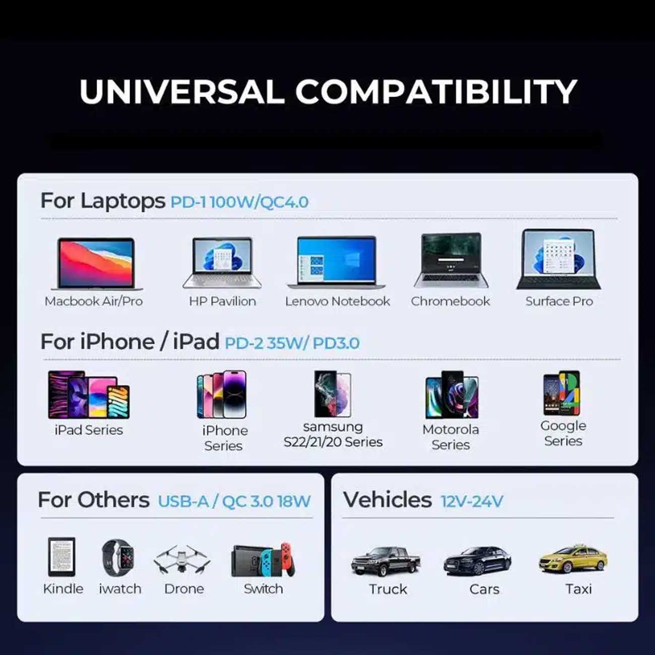 PD-1 Output: 5V=3A, 9V=3A, 12V=3A, 15V=3A, 20V=5A (حداکثر 100W)