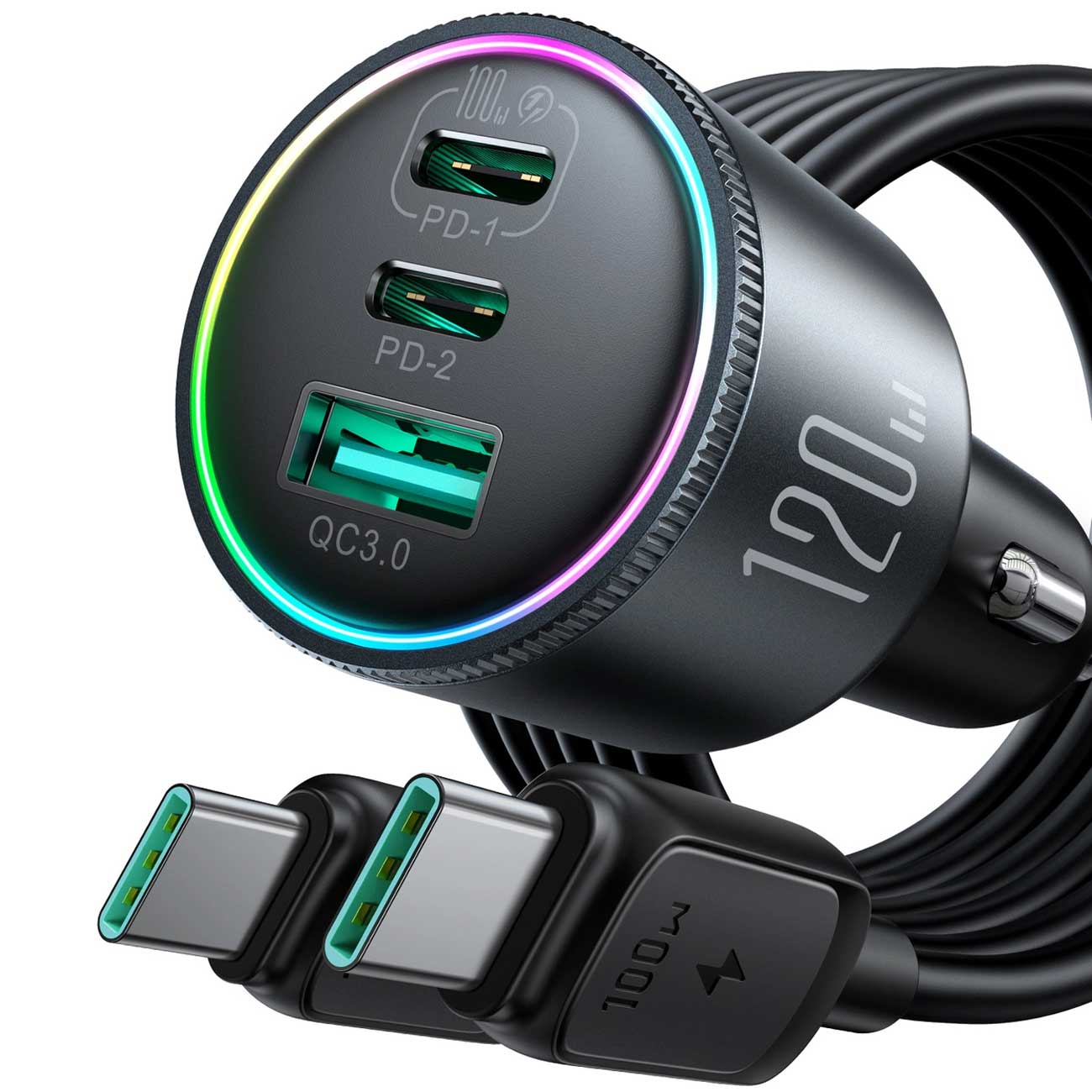 شارژر فندکی فست شارژ 120 وات جویروم JR-CCN07؛ شارژ سریع و ایمن در خودرو