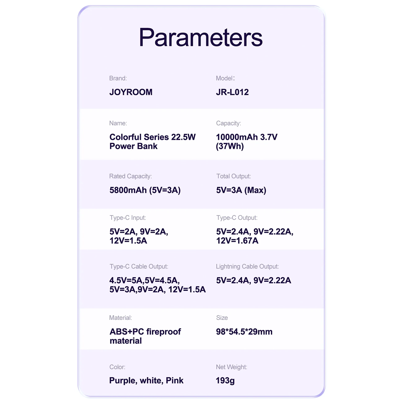 تصور کن وسط یه روز شلوغ یا تو سفر، باتری گوشیت رو بههم بریزه و نتونی با دوستانت هماهنگ بشی—حالا اگه یه پاوربانک داشتی که بدون کابل اضافی، 22.5 وات سریع شارژ میکرد و با رنگای شاد، استایلت رو هم حفظ میکرد، چقدر عالی بود؟ پاوربانک Joyroom مدل JR-L012 با 10000mAh واقعی (6000mAh قابل استفاده)، کابلهای داخلی Type-C/Lightning و PD3.0، دقیقاً همینه. این پاوربانک سبک با ABS/PC نسوز، 3 دستگاه همزمان شارژ میکنه و با نمایشگر دما، ایمنی رو تضمین میکنه.
