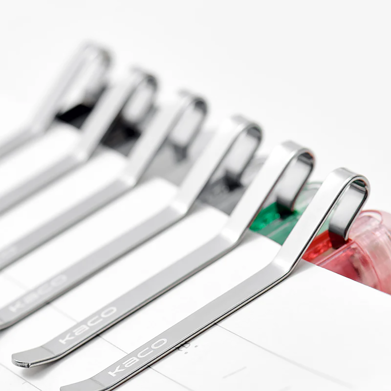 گیره فلزی زیبا و به شکل یک شاخه کوچک، نقطه تمایز این مدل است. این گیره علاوه بر ظاهر جذاب، کاربردی بوده و اتصال خودکار به دفتر، جیب یا کیف را آسان میکند. ترکیب طراحی ظریف و عملکرد کاربردی، جلوهای حرفهای به محصول بخشیده است.
