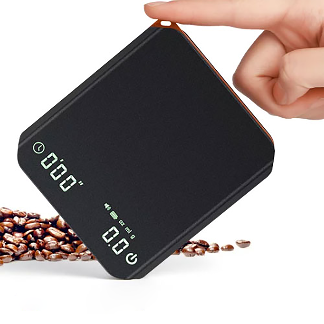طراحی مینیمال و کاربرپسند: با ابعاد جمعوجور (۹.۵x۱۰x۲ سانتیمتر) و وزن سبک (~۲۰۰ گرم)، به راحتی روی هر میزی جای میگیرد و قابل حمل است. سطح ضدلغزش آن ثبات لازم برای توزین فنجان یا سرور قهوه را فراهم میکند.
