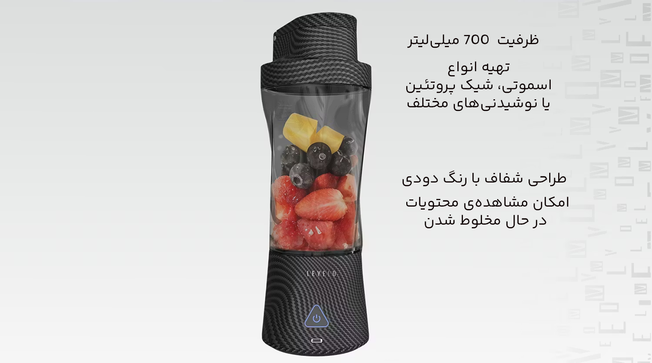 با بطری ۷۰۰ میلیلیتری این بلندر، دیگر نیازی به آمادهکردن مقدار زیاد نیست. این ظرفیت برای یک وعده کامل و رضایتبخش طراحی شده است. طراحی شفاف و مدرن آن با رنگ دودی، به شما این امکان را میدهد که هنر ترکیب مواد و رنگها را در حین کار دستگاه به تماشا بنشینید و لذت آمادهسازی نوشیدنیتان را دوچندان کند.
