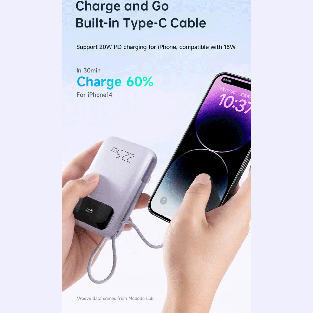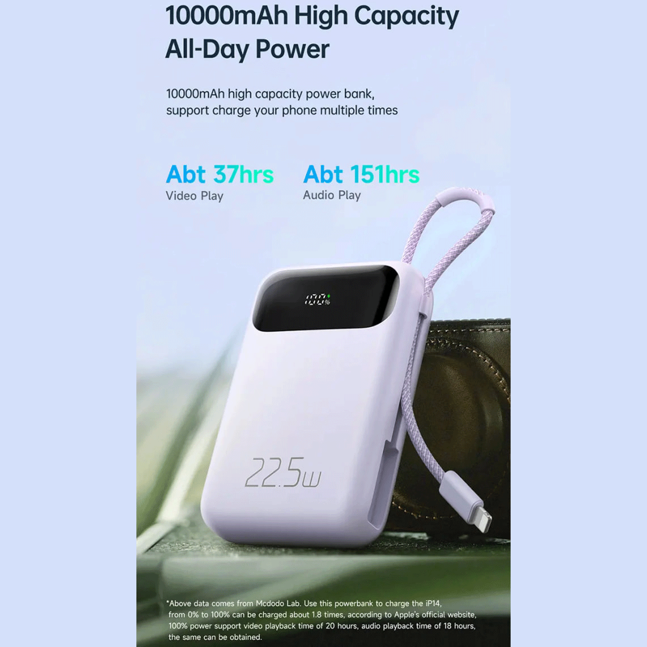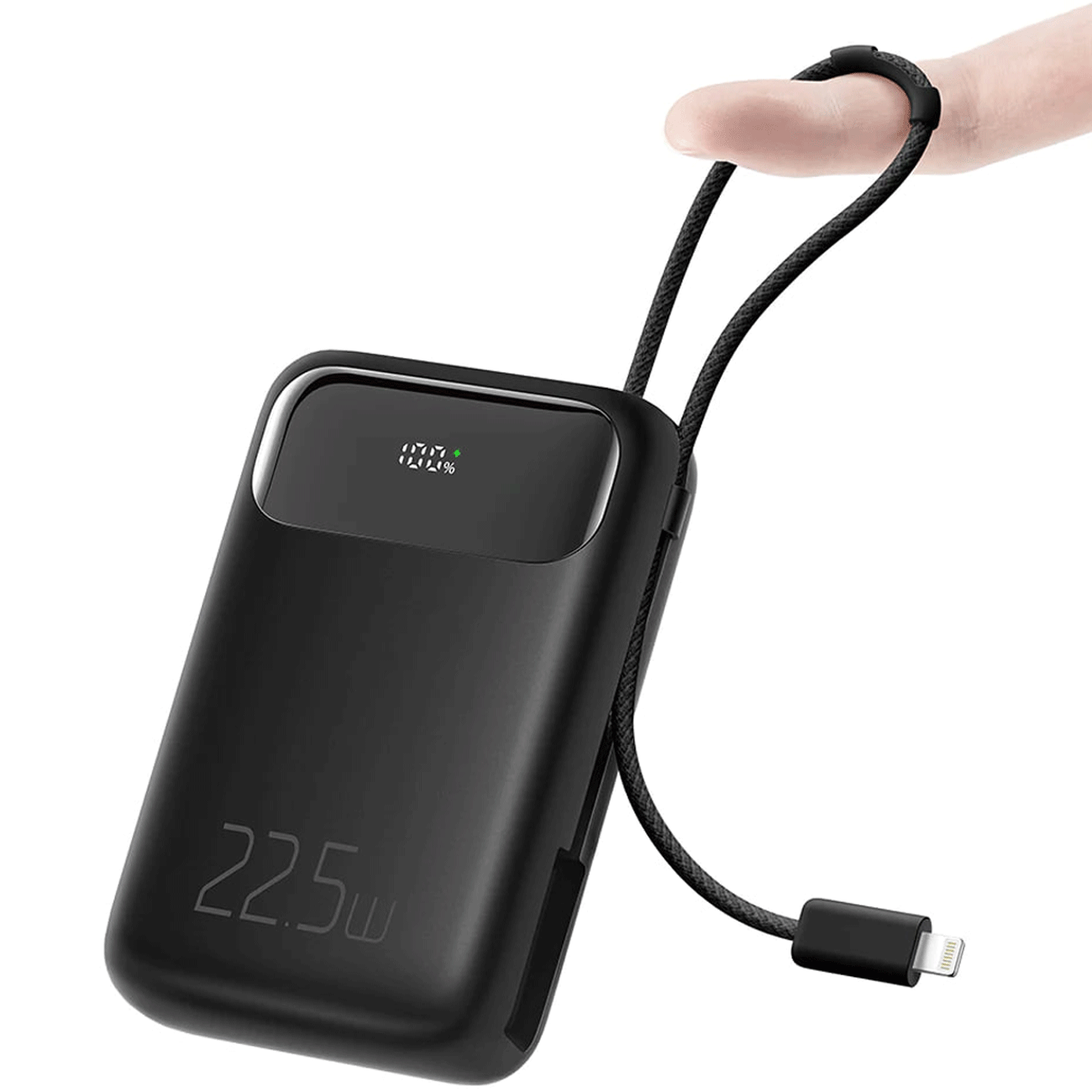 طراحی صحیح و ابعاد فشرده ۱۰۳ × ۶۷.۵ × ۲۶ میلیمتر و وزن سبک ۲۴۰ گرمی آن، جابهجایی را بسیار آسان کرده و آن را به همراهی ایدهآل برای سفر تبدیل میکند. یک ویژگی برجسته در قسمت کناری پاوربانک، یک کابل لایتنینگ داخلی و جمعشونده تعبیه شده است که به شما امکان میدهد بدون نیاز به حمل کابل اضافی، گوشیهای آیفون خود را مستقیماً و به راحتی شارژ کنید.