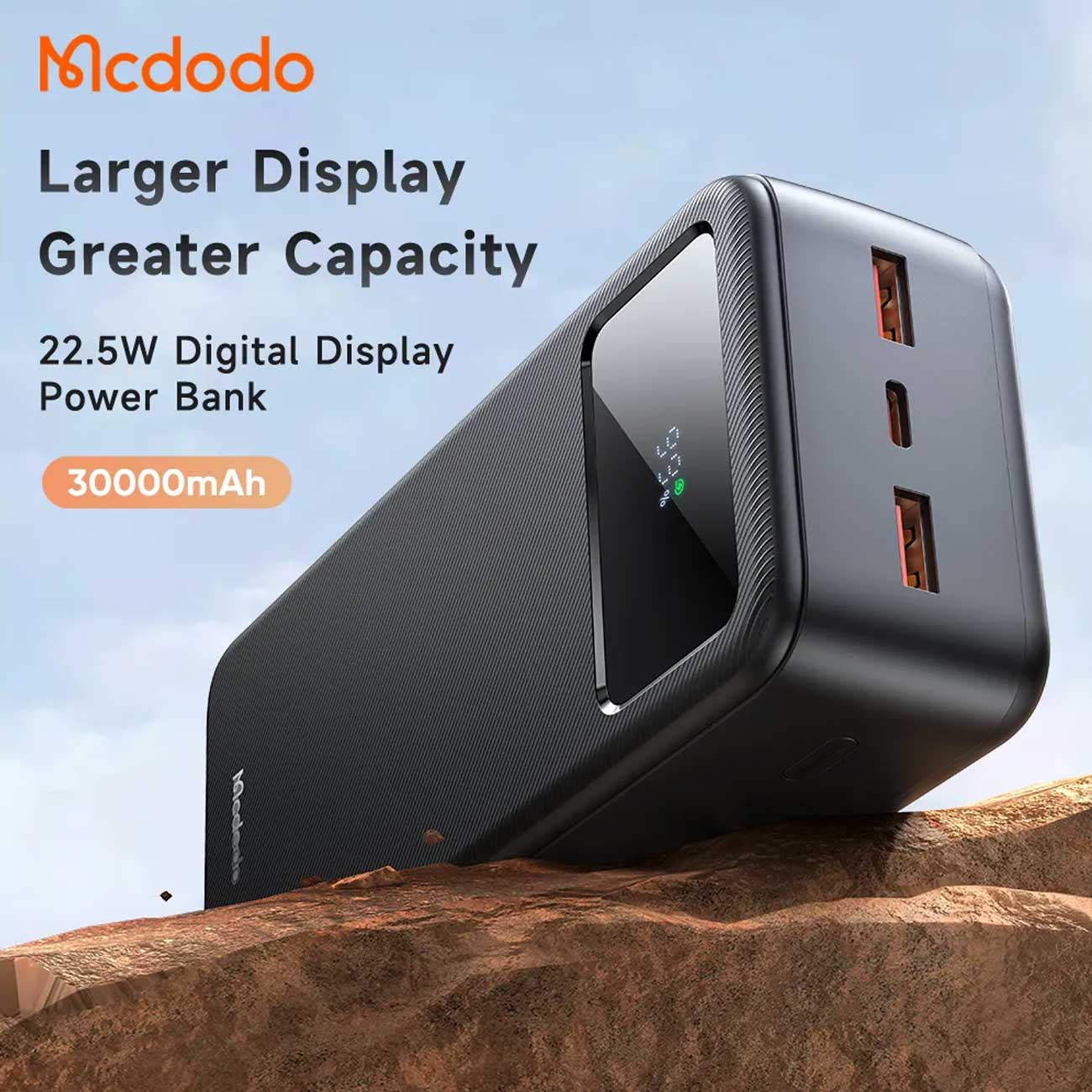 در این زمینه، شرکت مکدودو محصولی با نام پاوربانک 30000 میلیآمپر ساعتی مدل MC-424 را طراحی کرده که به پورت فستشارژ Type-C و USB مجهز بوده و توان خروجی کلی آن ۱۰.۵ وات میباشد. این پاوربانک با دو پورت خروجی USB، امکان شارژ همزمان چندین دستگاه را برای شما فراهم میسازد.