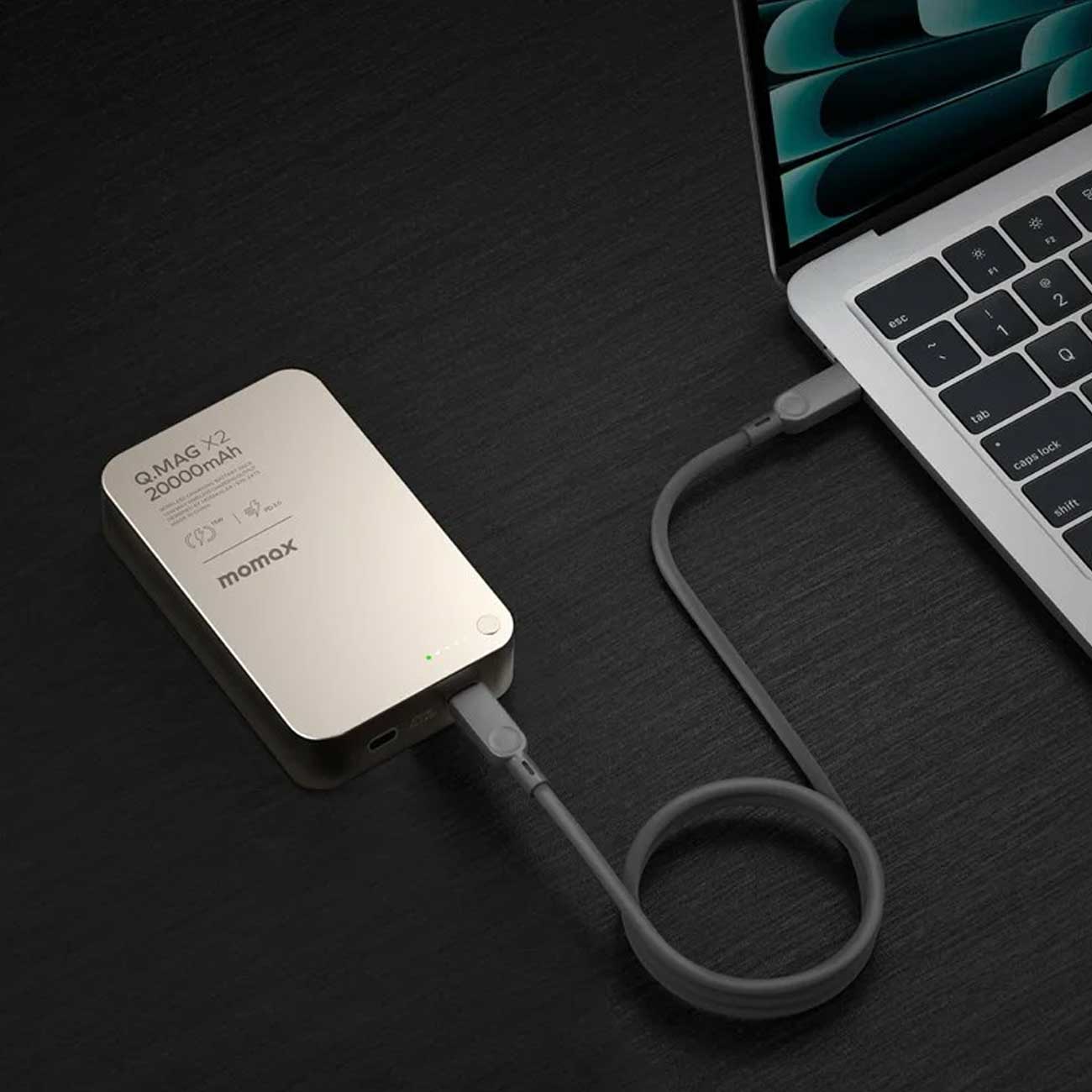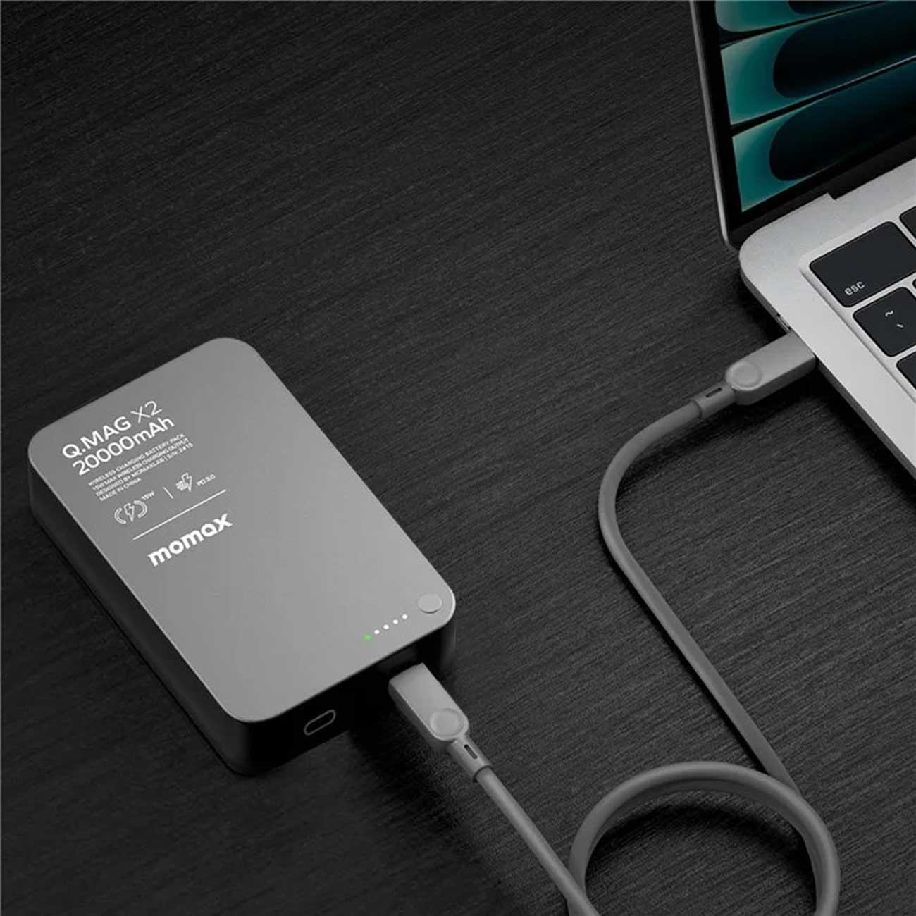 پاوربانک فستشارژ مگنتی مومکس با ظرفیت ۲۰۰۰۰ میلیآمپرساعت، عملکرد شارژ بیسیم مغناطیسی ۱۵ واتی و توان خروجی PD 20W، انتخابی عالی برای کسانی است که به دنبال راهحلی مطمئن، سریع و قابل حمل برای شارژ هستند.