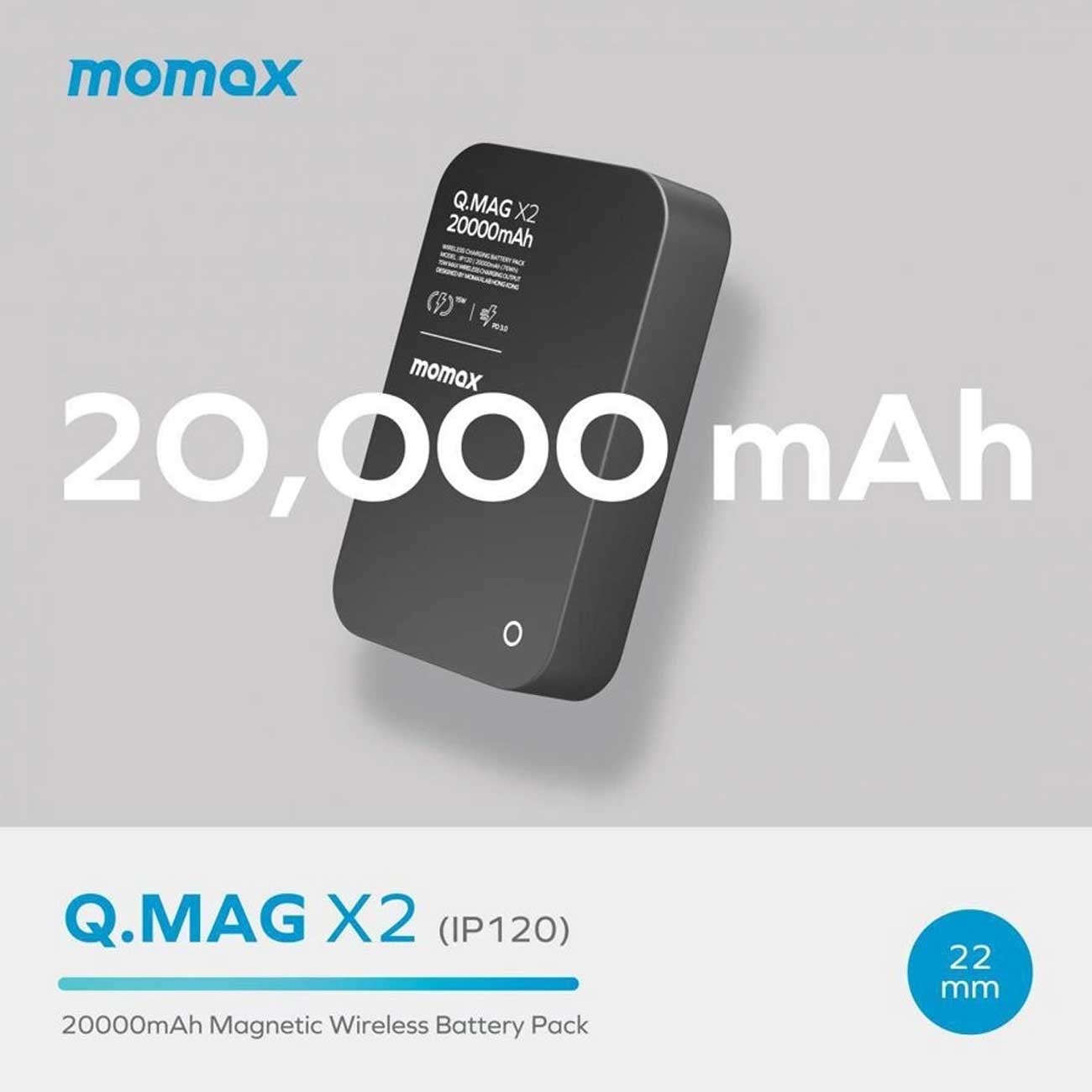 مومکس پاوربانک Q.MAG X2 را با ابعاد فشرده ۱۰۹.۵ × ۶۸.۵ × ۲۳.۵ میلیمتر و وزن ۳۵۰ گرمی طراحی کرده که حمل و استفاده از آن را بسیار آسان میسازد. طراحی کوچک و هوشمندانه آن این مزیت را دارد که حتی هنگام اتصال گوشی به پاوربانک برای شارژ بیسیم، میتوانید به راحتی از گوشی استفاده کنید، مکالمه نمایید، عکس بگیرید یا به تماشای محتوا بپردازید.