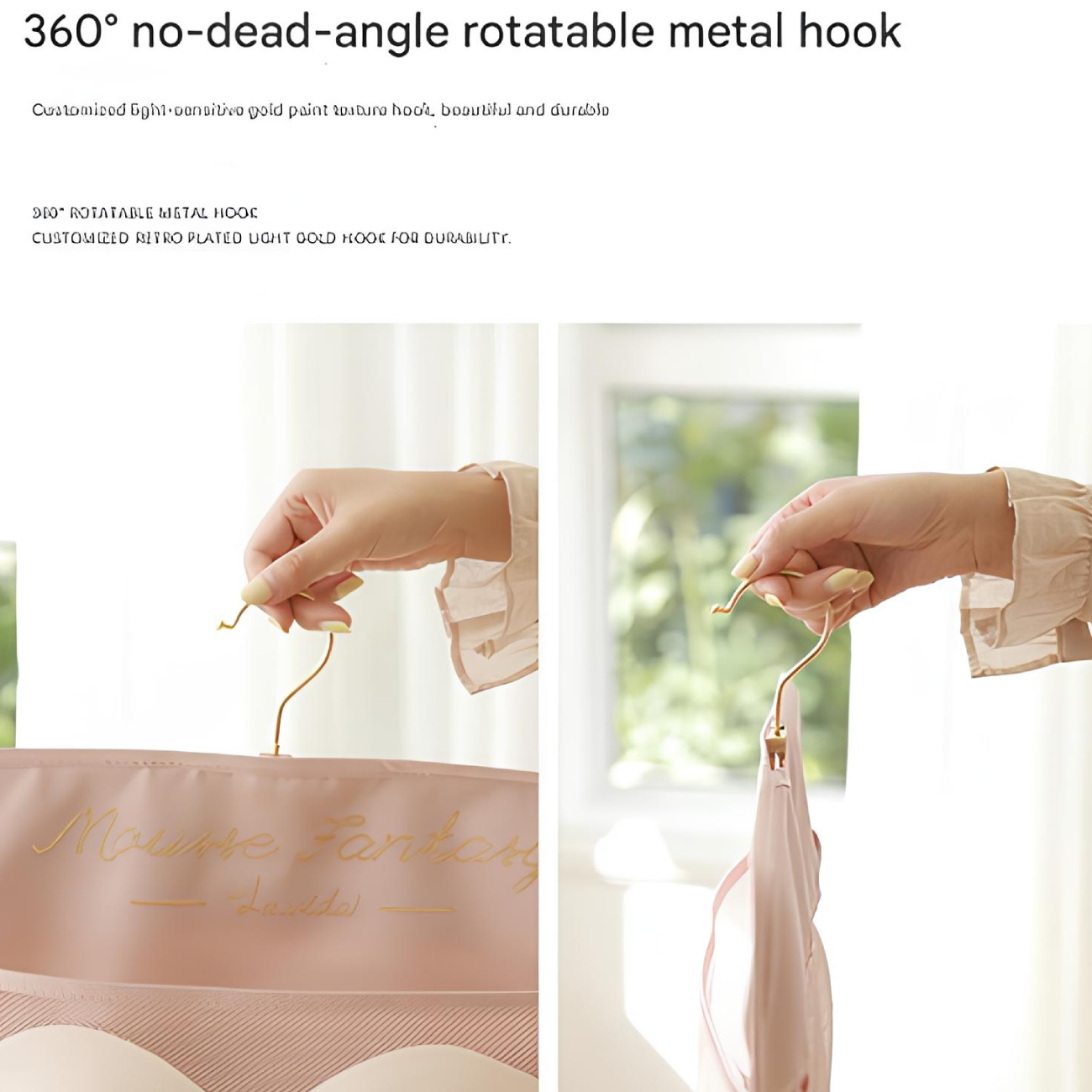 قلاب فلزی طلایی با چرخش 360 درجه، نصب رو در هر جایی—کمد، در یا چمدان—آسون میکنه. ضدزنگ و مقاوم، دوام بالایی داره و Mousse Fantasy رو به آویز همهکارهای بدل کرده.