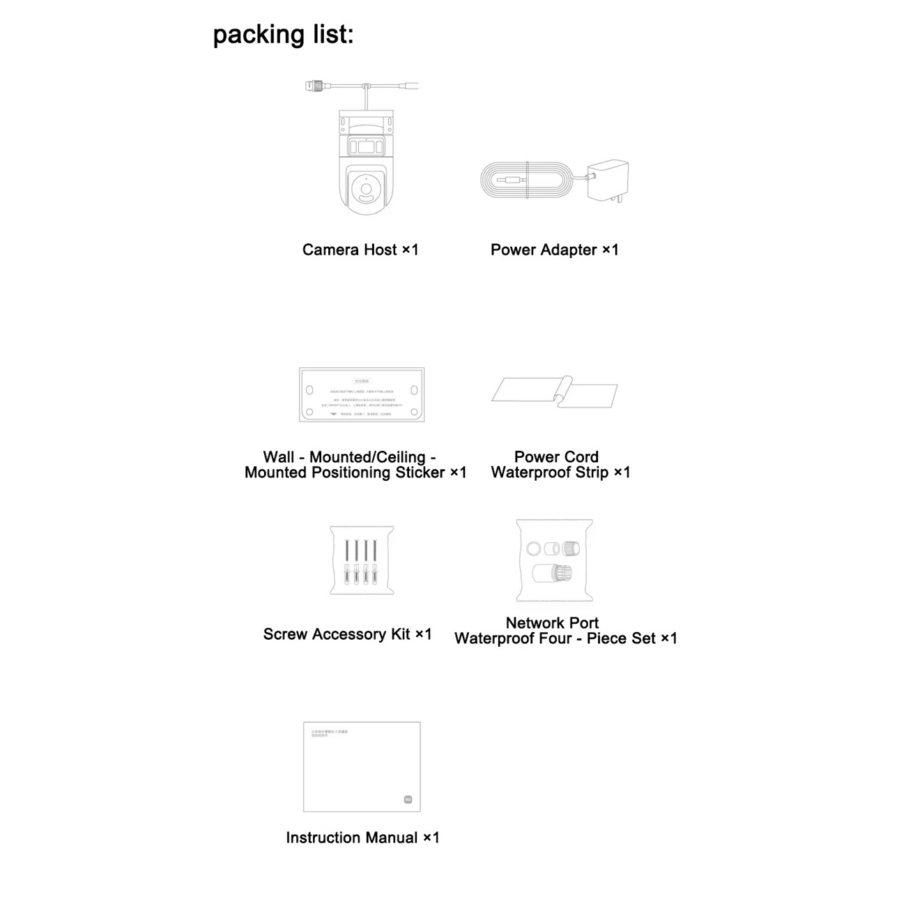 | اقلام همراه | دوربین ×1، آداپتور ×1، برچسب نصب ×1، نوار ضدآب کابل ×1، پک پیچ و لوازم ×1، مجموعه ضدآب پورت شبکه ×1، دفترچه راهنما ×1 |