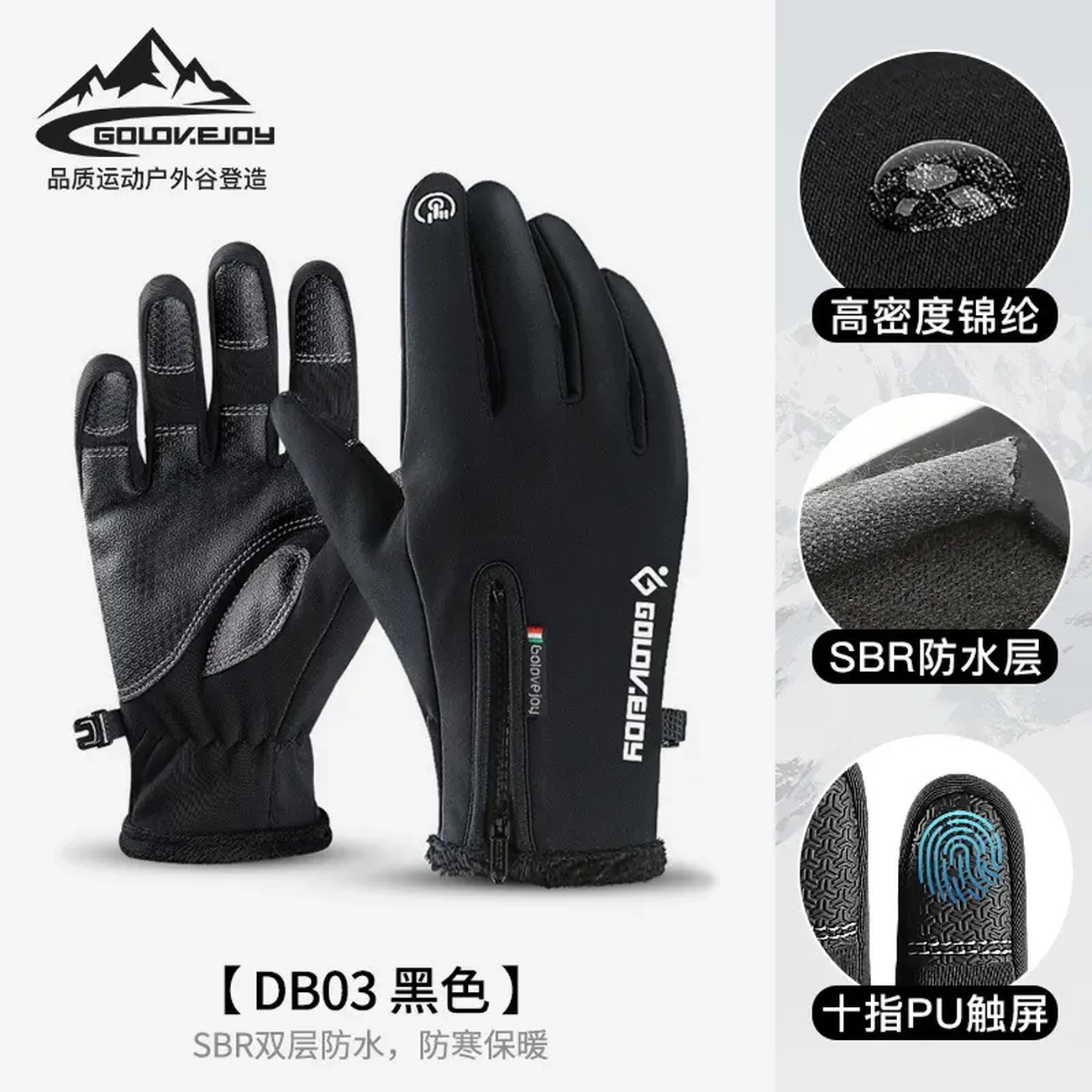 دستکش ضدآب گولووجوی DB03 از پارچه Diving Cloth یا پارچه غواصی ساخته شده که مقاومت زیادی در برابر آب، باد و رطوبت دارد و همزمان انعطافپذیر است. ضخامت متعادل آن تعادلی خوب بین گرما و راحتی ایجاد میکند.